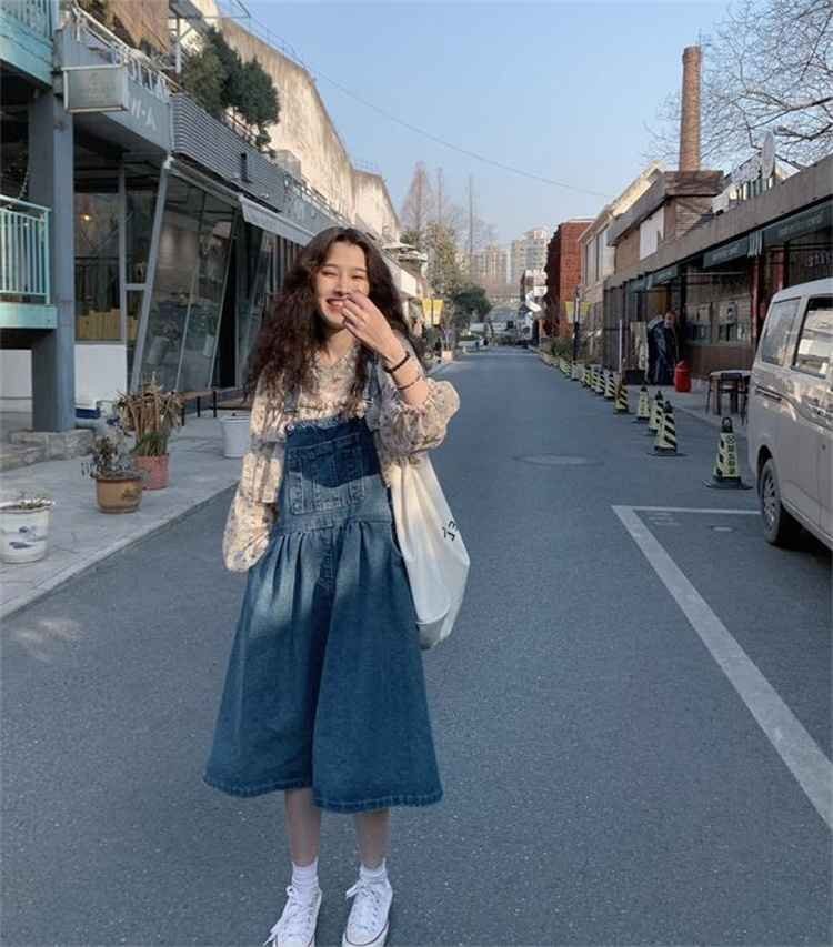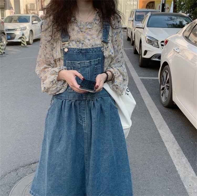 サスペンダースカート ジャンパースカート デニム ロング丈 XL ブルー