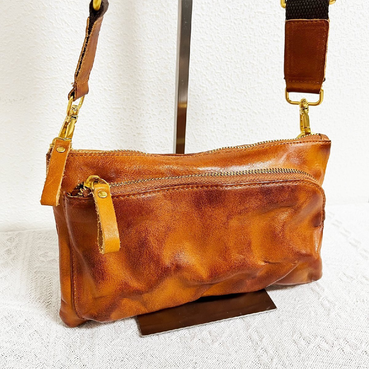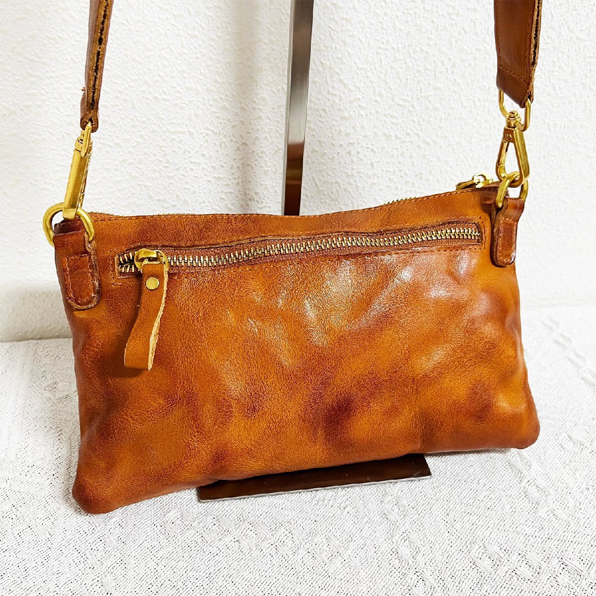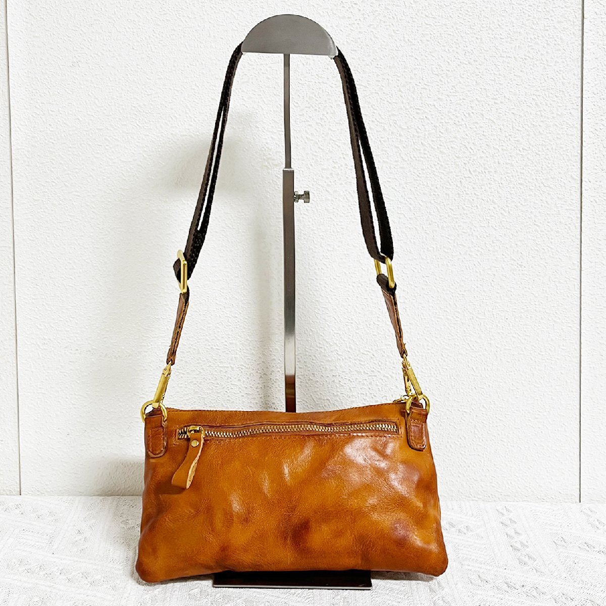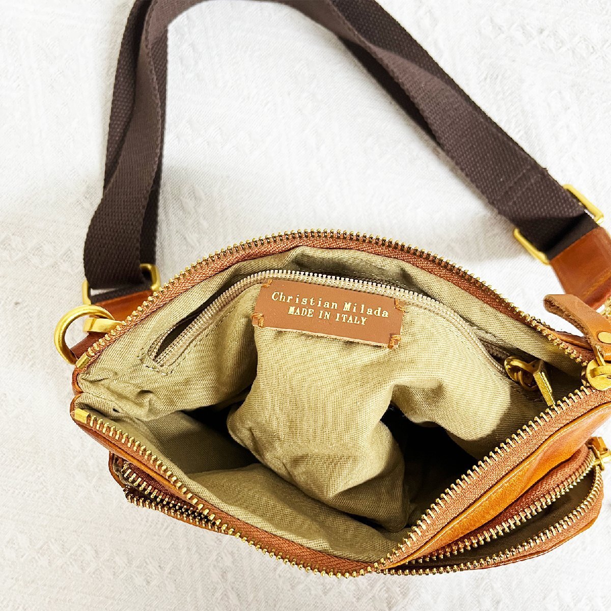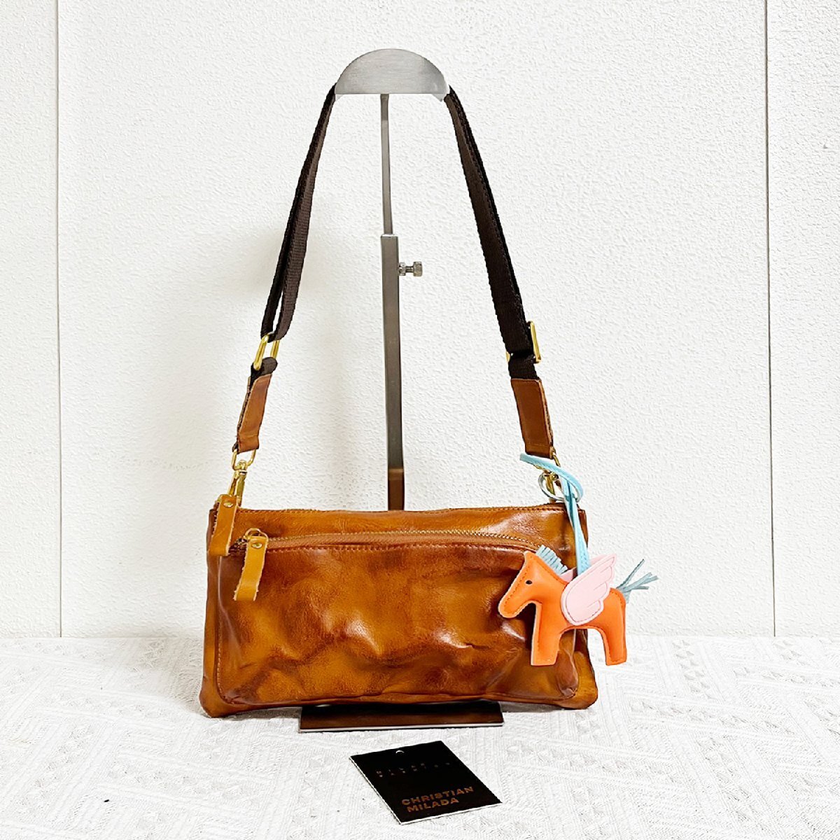 上品EU製 定価11万★christian milada・ミラノ発・ショルダーバッグ★牛革 レザー 軽量 柔らか 凹凸感 肩掛け レトロ系 日常 ビジネス