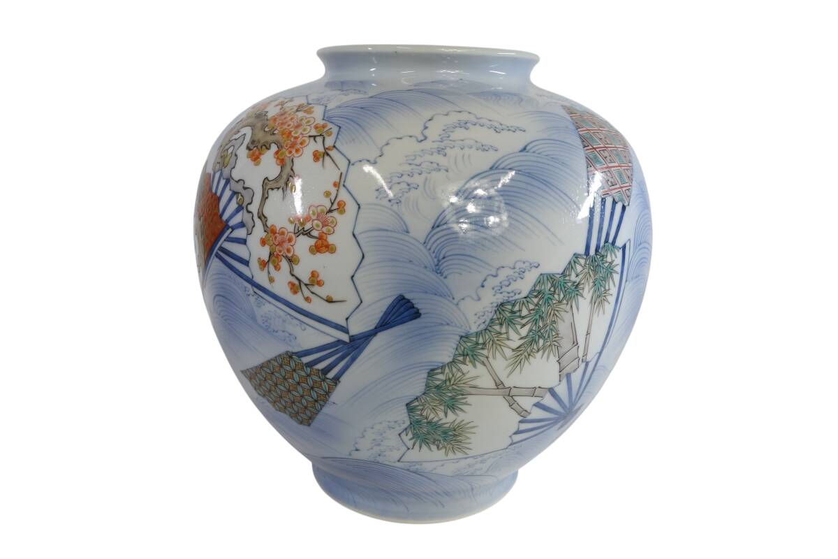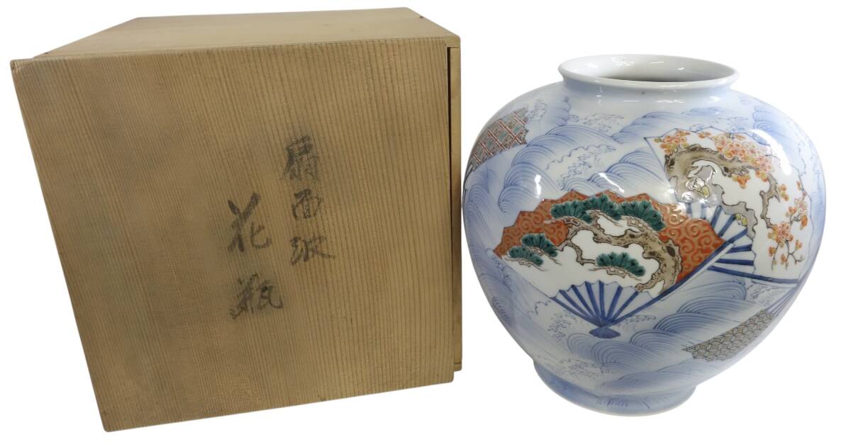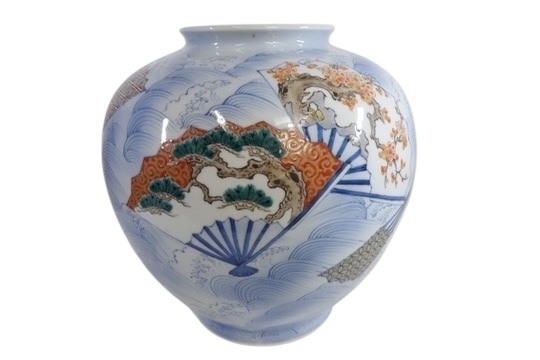 昭和ビンテージ 有田焼 扇面波 花瓶 松竹梅 縁起物 1980年代〜1990年代 SWM709
