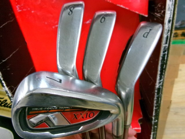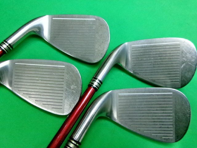 グリップは純正で各番手とも滑ります。 フェース面は打球傷と当たり傷がございます。 バックフェースはフレーム内に塗装はがれがあり、当たり傷とこすれ傷がございます。 シャフトは各番手にこすれ傷とひっかけ傷があり、番手により小さめの塗装はがれが所々ございます。 |