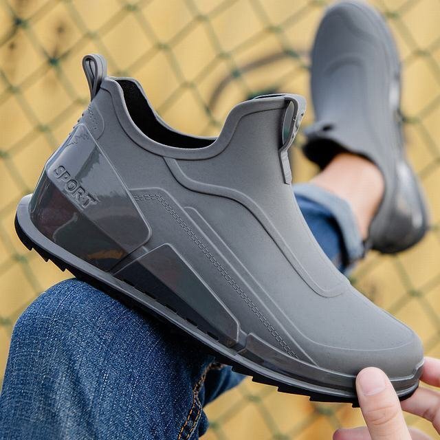 レインシューズ レインブーツ メンズ 雨靴 歩きやすい 防水 サイドゴア スニーカー おしゃれ 防滑 梅雨対策 エナメル グレー 25cm