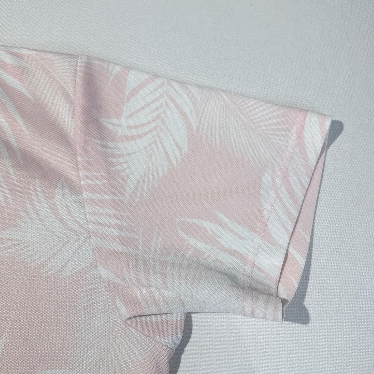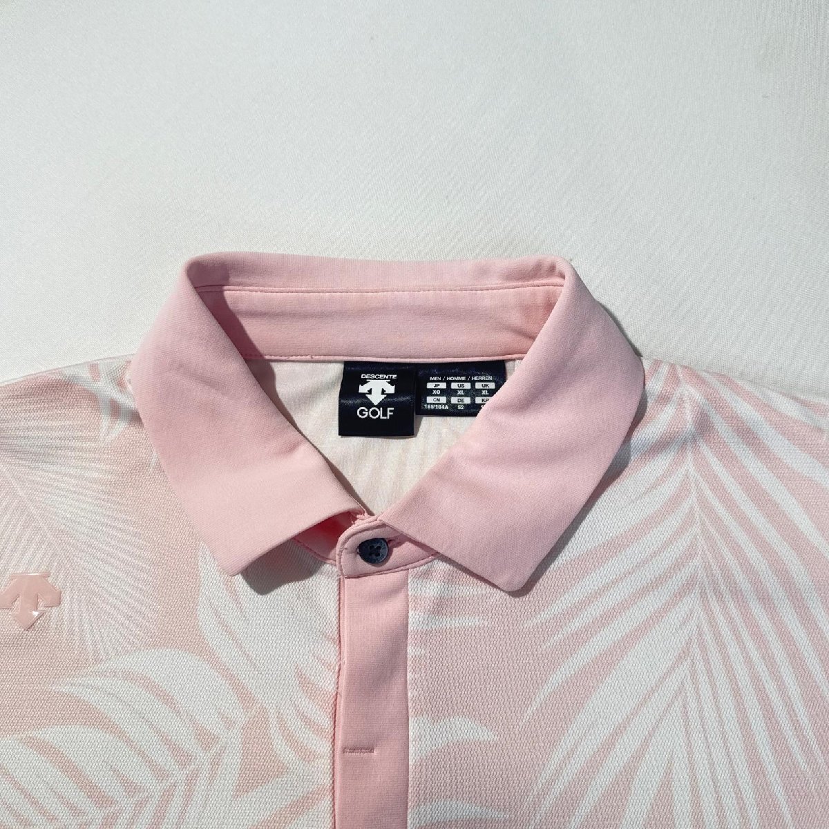 coco 中古 デサントゴルフ DESCENTE GOLF メンズ 半袖ポロシャツ XO ピンク×白 パームツリー柄 レターパックプラス発送可 102820