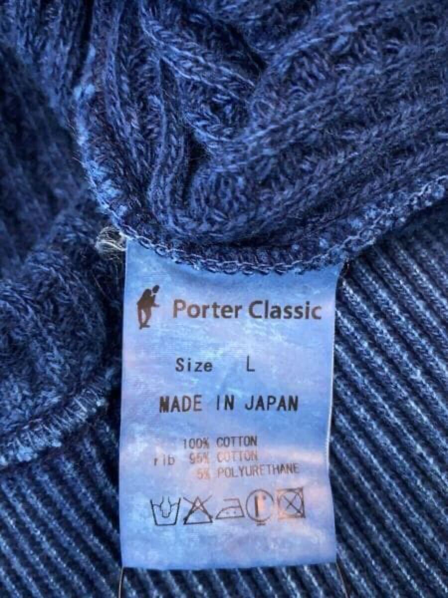 【希少】Porter Classic FRENCH THERMAL TURTLENECK IDG ポータークラシック フレンチサーマルタートルネック 長袖Tシャツ size L コットン made in Japan 日本製 インディゴ ワッフル生地 刺繍