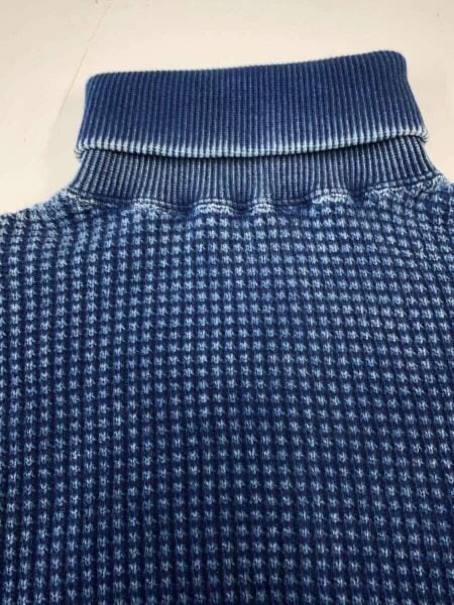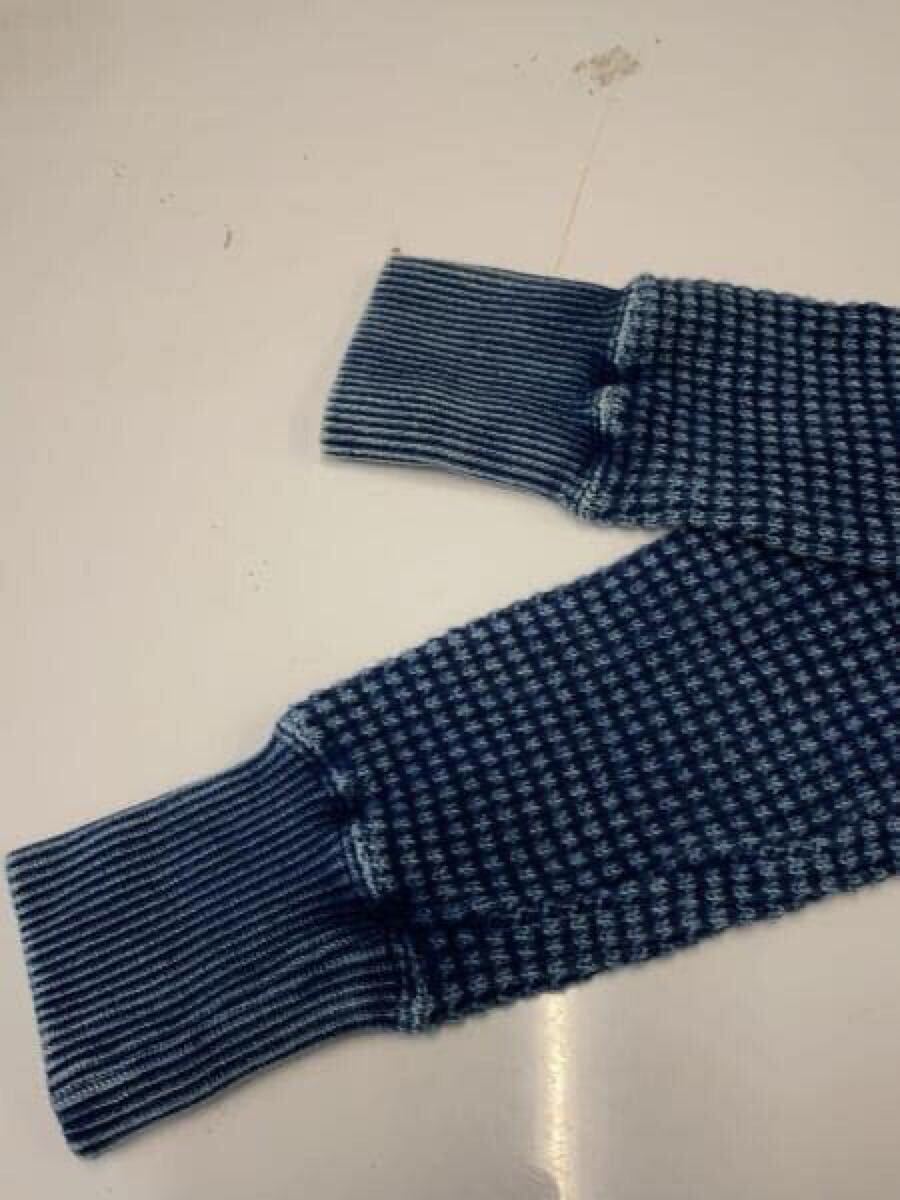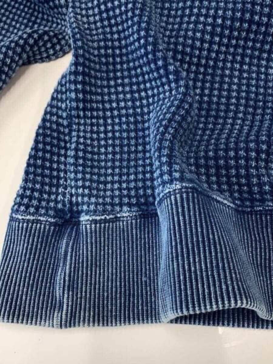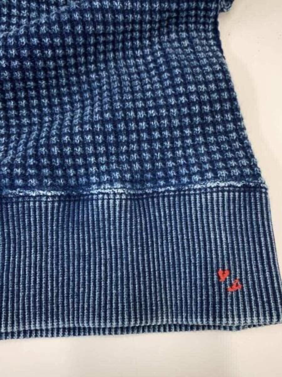 ふっくらとした質感、空気を含んだような軽さと柔らかさは、 一日の始まりからリラックスタイムまで快適に着用可能。 インディゴ染ですので色味の変化もお楽しみ頂けます。