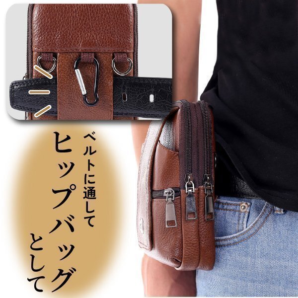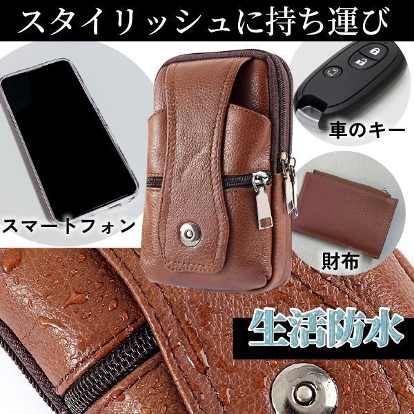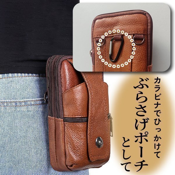 スマホバック ベルトポーチ ショルダー ミニショルダー 本革 牛革 バック スマホ収納 スマホ入れ コンパクト 登山ポーチ ブラウン