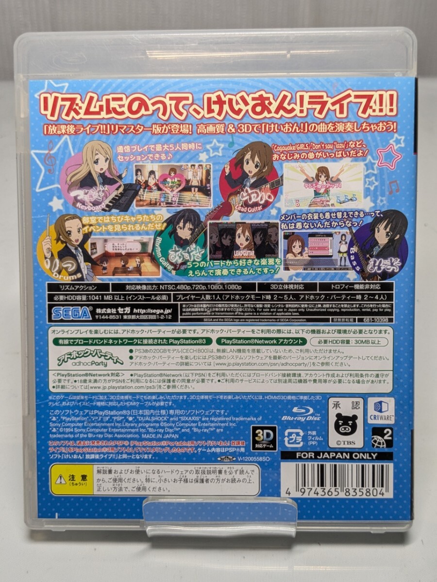 動作品 ソニー SONY プレイステーション3 ps3 ソフト けいおん! 放課後ライブ!! HD ver シール付き 中古品