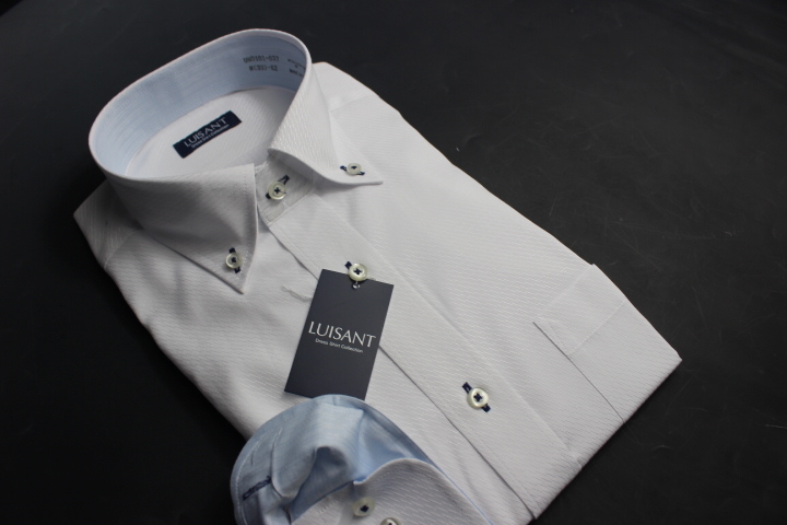 送料185円【新品】LUISANT ボタンダウンワイシャツ /標準体 形態安定  M(39-82) 白ドビー/綾織柄(山喜取扱い品)UND101/037-(7C986
