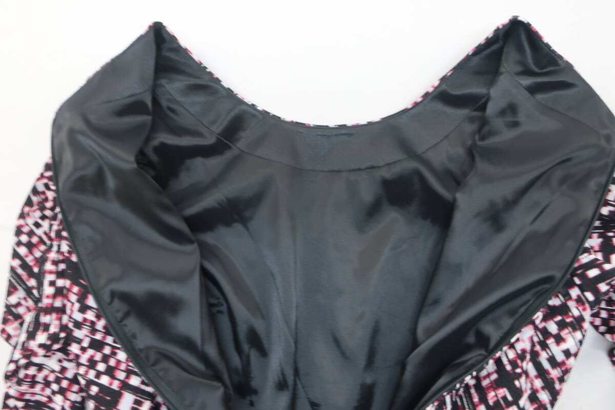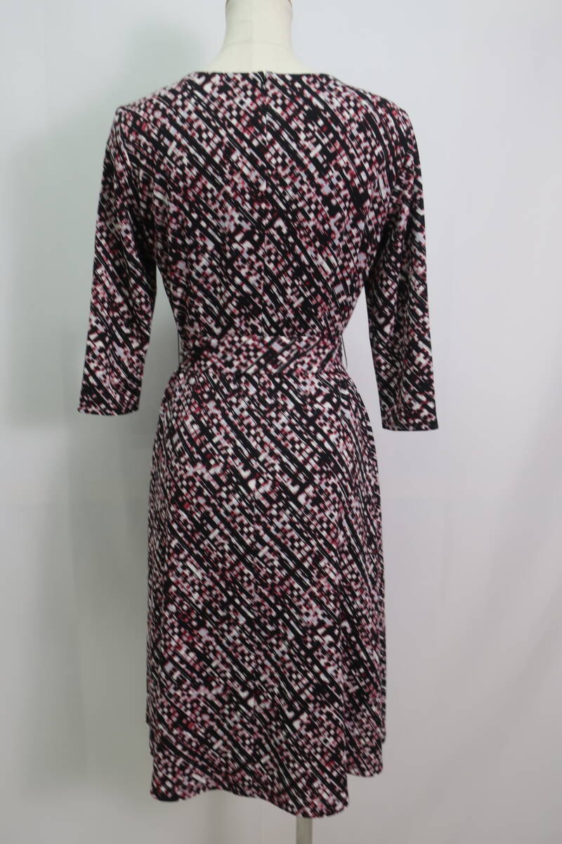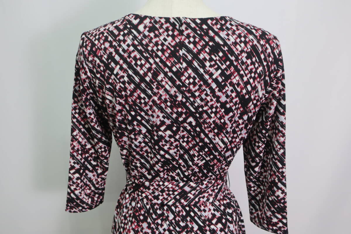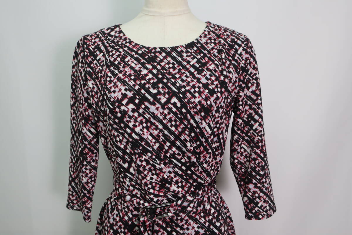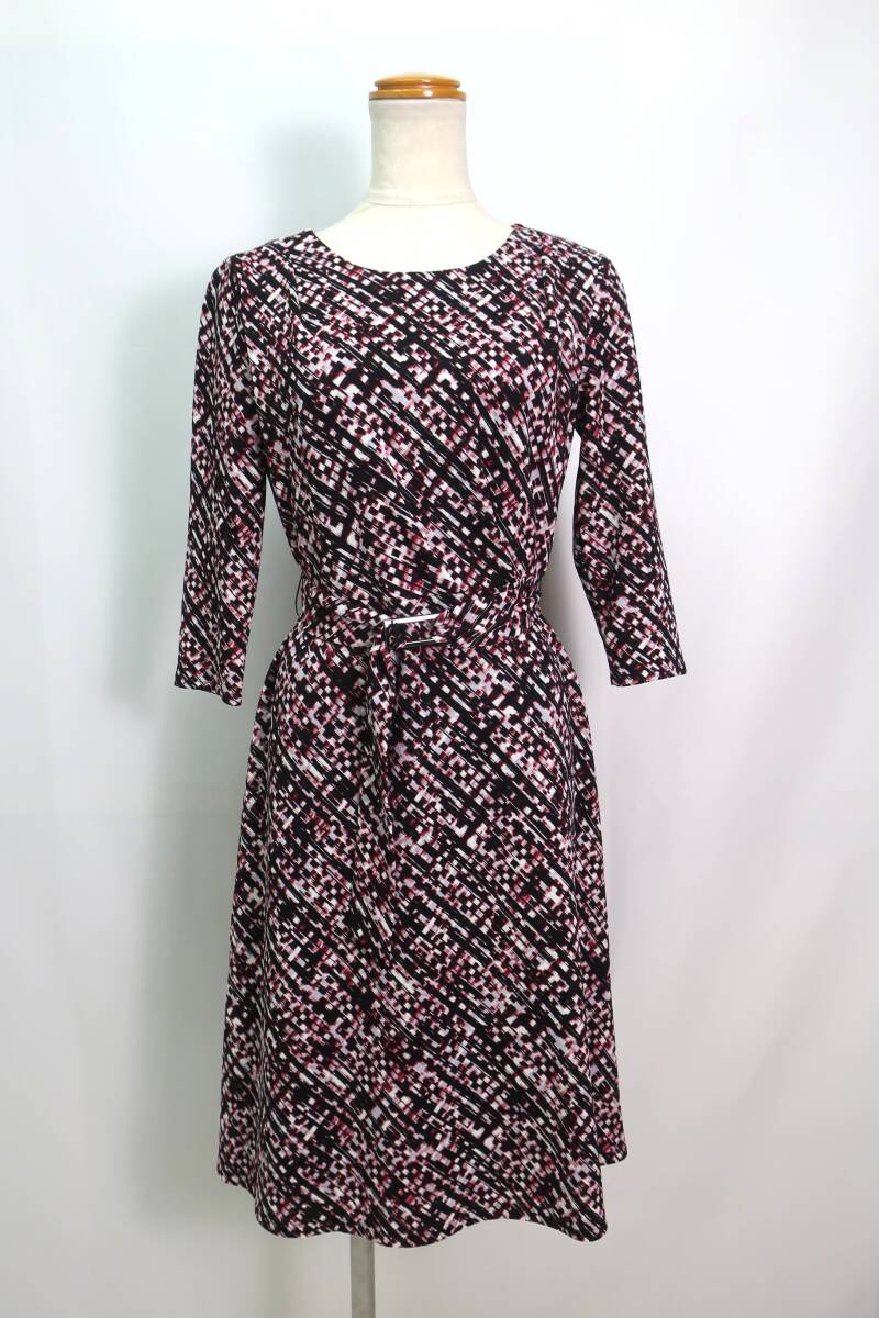 【送900円】1082 COUP DE CHANCE クードシャンス ウエストベルト付きワンピース 七分袖 日本製 ラウンドネック 総柄 36