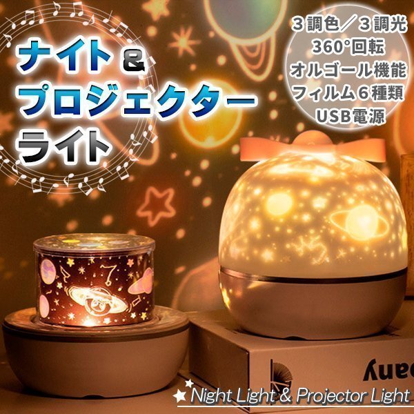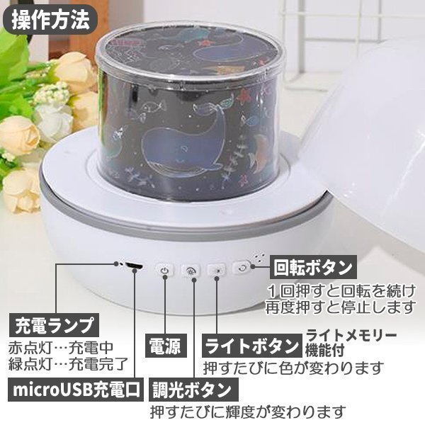 ベッドサイドランプ 間接照明 プラネタリウム 星空 夜空 電池式 回転 プロジェクター テーブルランプ ホワイト