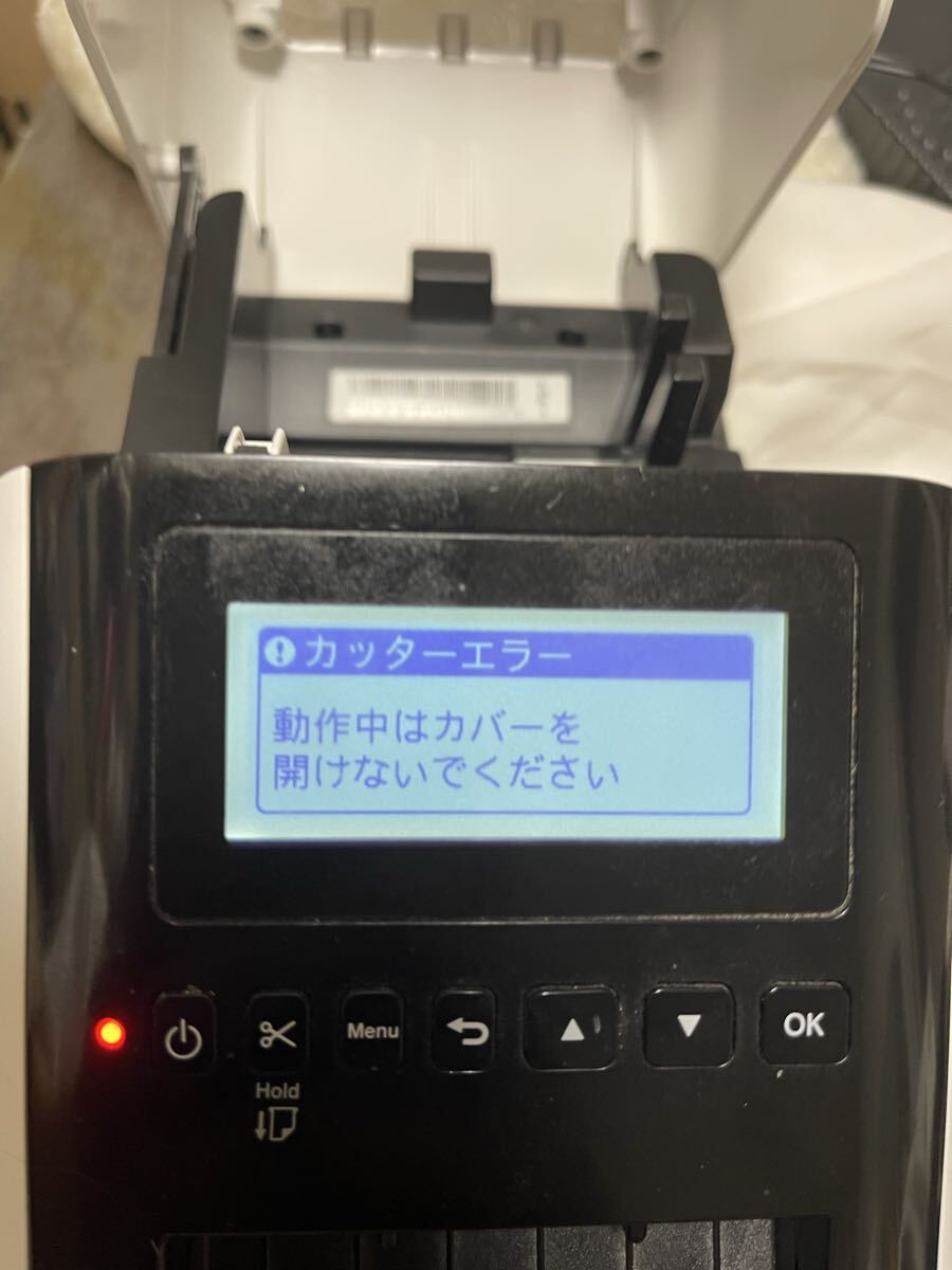 最初は「用紙を送れません」と表示されていましたが、現在は「カッターエラー」も出るようになりました。