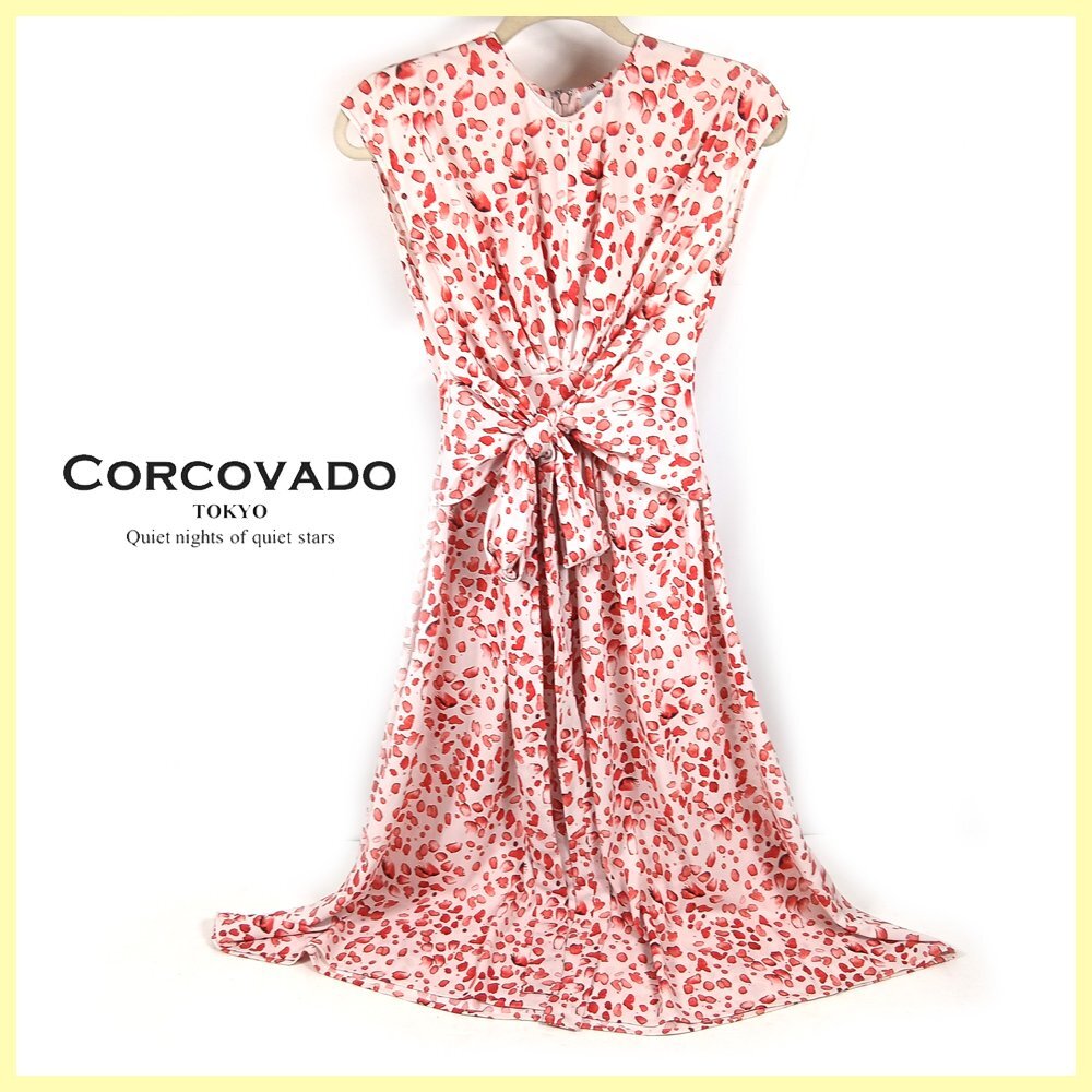 ▲▽CORCOVADO(コルコバード)◇フラワープリントストレッチワンピース◇Mサイズ◇レッド×ピンク