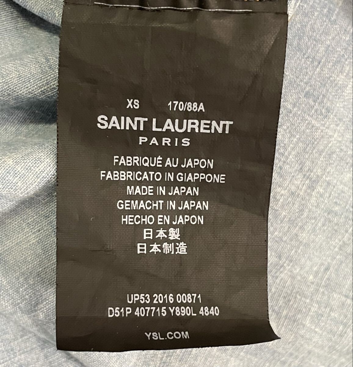 サンローランパリ エディスリマン 2016SS ライトブルー ウェスタンデニムシャツ、サイズXSになります。