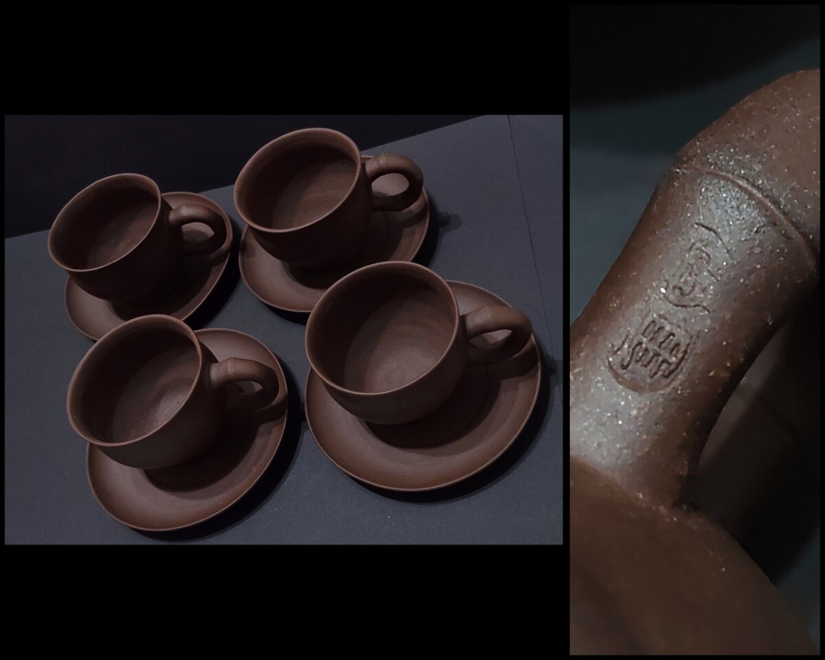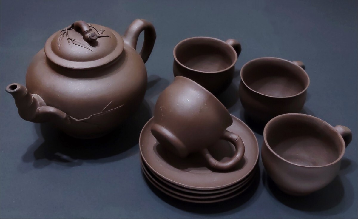 急須 紫砂壺 竹 煎茶道具 茶道具 茶器セット 湯呑み/受け皿 中国 古美術 骨董 朱泥 中古品です。