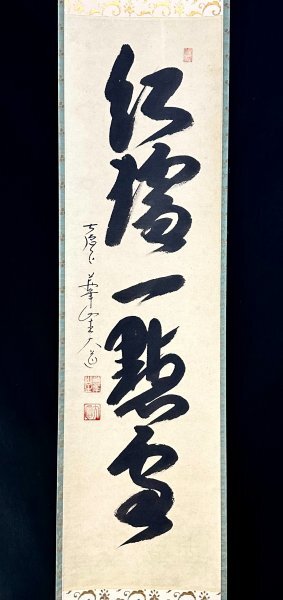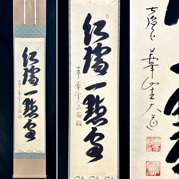 t75H09【真作】西垣大道「紅爐一點雪」掛軸 紙本 肉筆 書 臨済宗大徳寺派 極楽禅寺住職 茶道具 茶掛け 兵庫の人 共箱 タトウ