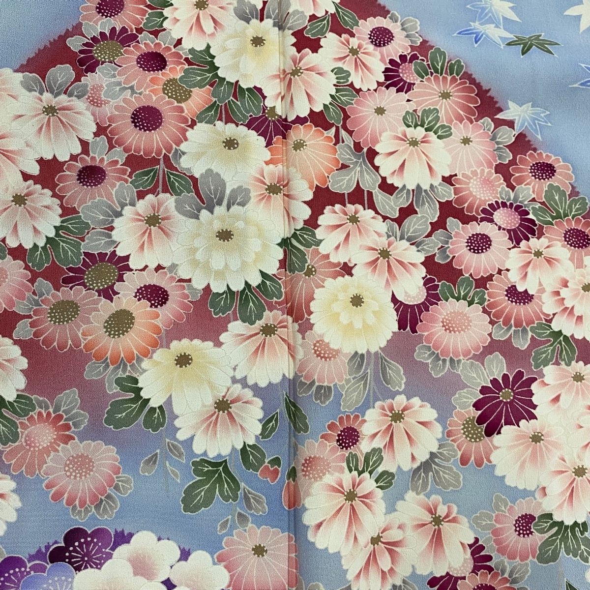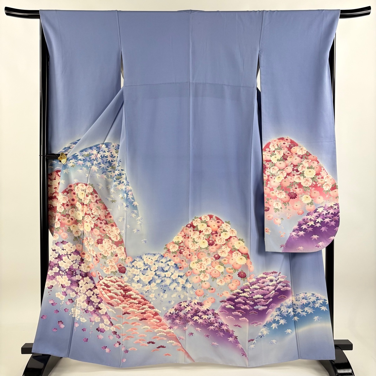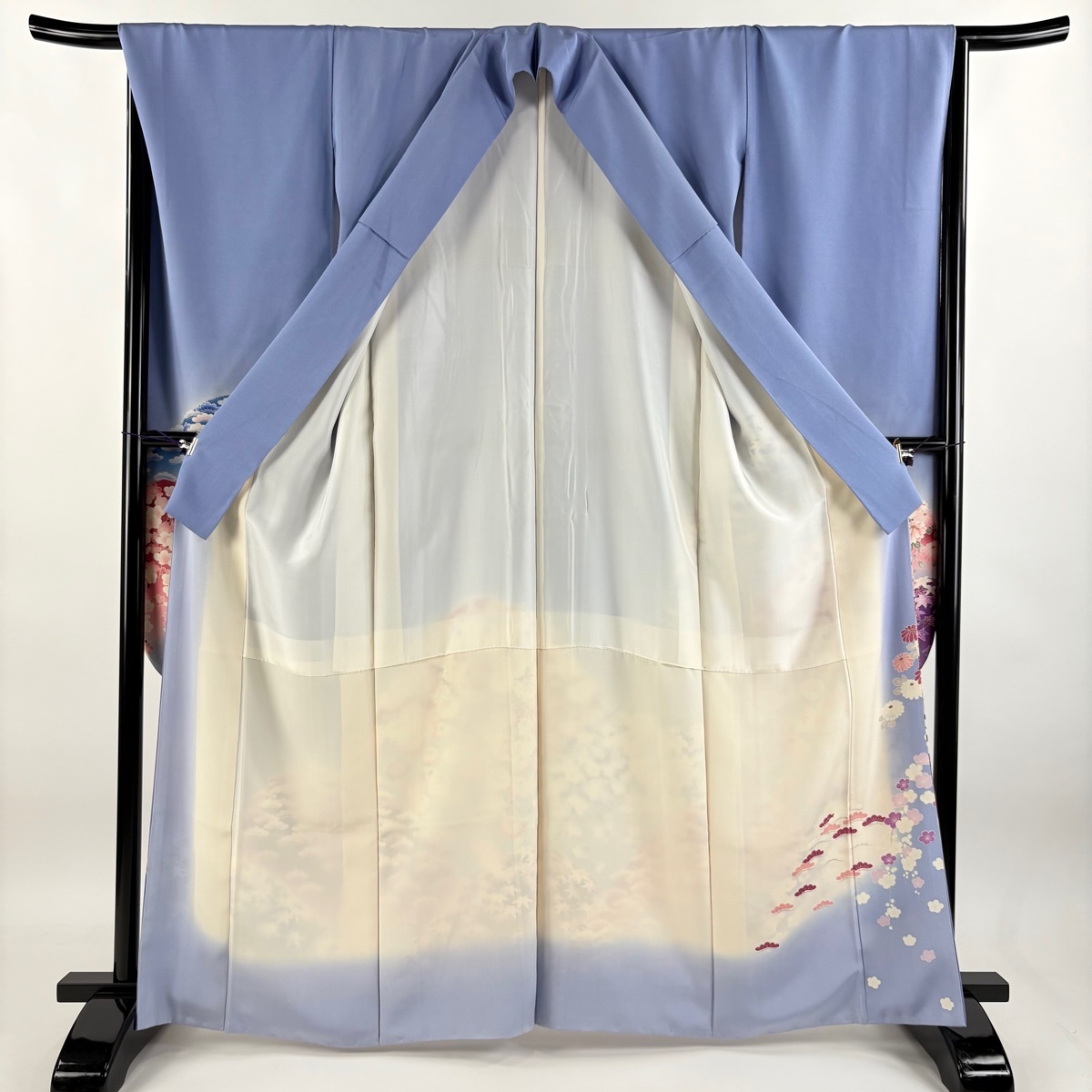 振袖 秀品 菊 松梅 ぼかし 青灰色 袷 身丈164 裄丈67 M 正絹 【中古】 |