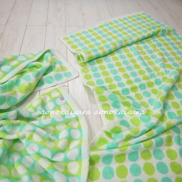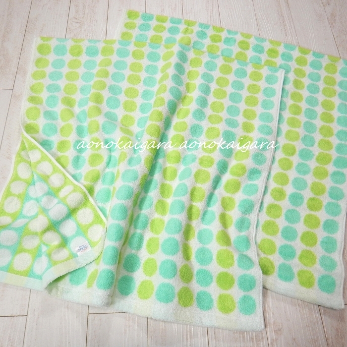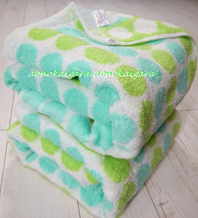 新品●今治産●ふわふわ●柔らか●無撚糸●水玉●ストライプ●バスタオル2枚●グリーン系