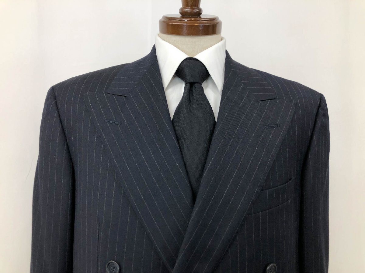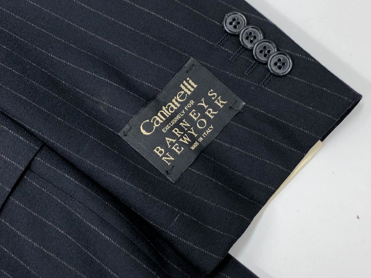 未使用【カンタレリ×バーニーズニューヨーク】 ロロピアーナ生地 ダブル6Bスーツ (メンズ) size50 紺系 ストライプ柄 30 34738◇33RMS2352