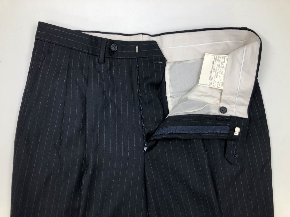 ・自宅内保管のお品です。ジャケット脇裏地とスラックス裏地に保管による薄い汚れはありますが、着用時表からは見えません。それ以外の状態は良いです。