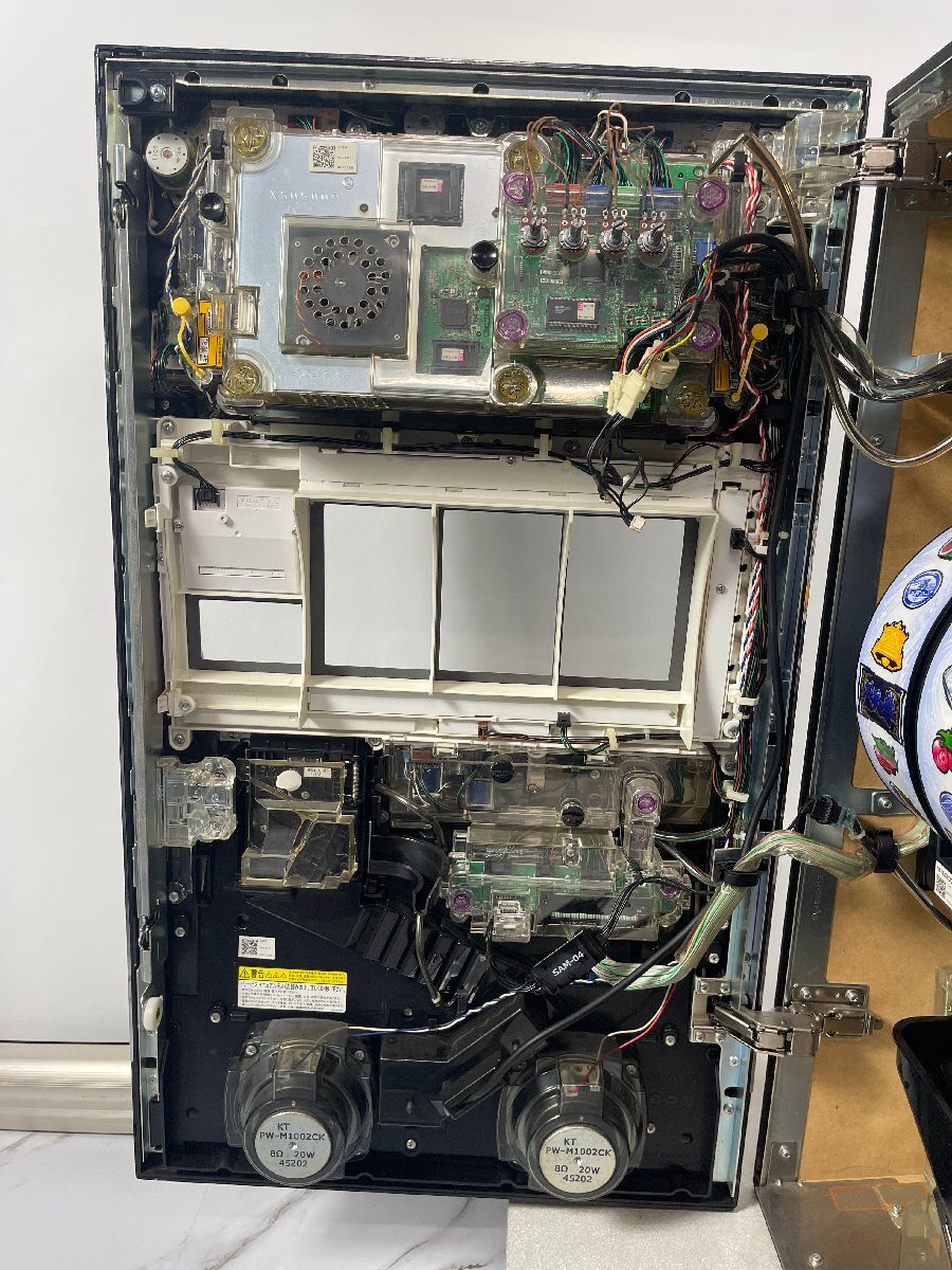 ・テスト用ドアキーでドアを開き、内部の設定変更基板にキーを挿して右に回し、設定変更動作を確認いたしました