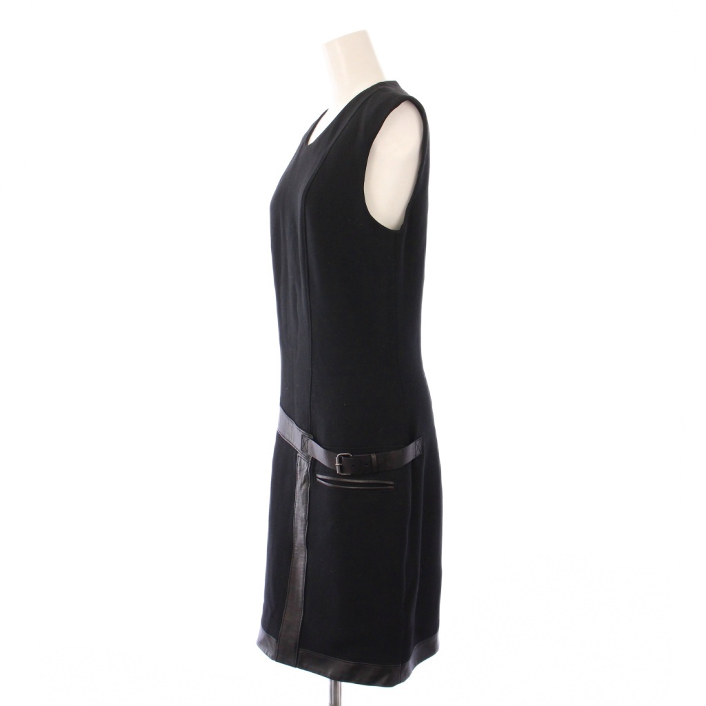 ヘルムートラング HELMUT LANG ワンピース ノースリーブ ひざ丈 ラムレザー 切替 2 黒 SW-D0664 /TK レディース
