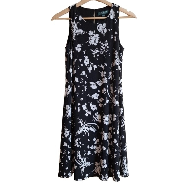 ラルフローレン RalphLauren サイズ2 S - 黒×白 レディース ノースリーブ/ひざ丈/花柄 ワンピース