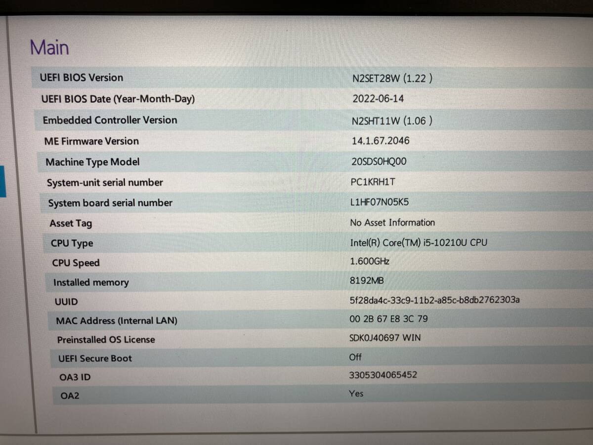【i5第10世代】Lenovo ThinkPad X390/Core i5-10210U/8GB/HDDなし/13.3型/カメラ/タッチパネル/BIOS確認済み/ジャンク品