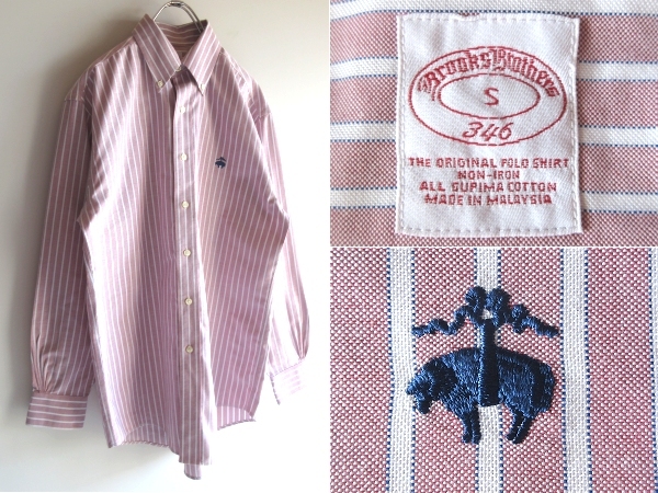 00sビンテージ Brooks Brothers 346 ブルックスブラザーズ 羊ロゴ刺繍 スーピマコットン ストライプ オックスフォード BDシャツ S ネコポス