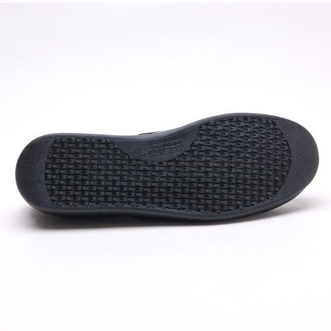 ゆったり幅広EEE設計と柔らかストレッチ素材で長時間履いても疲れにくい設計。