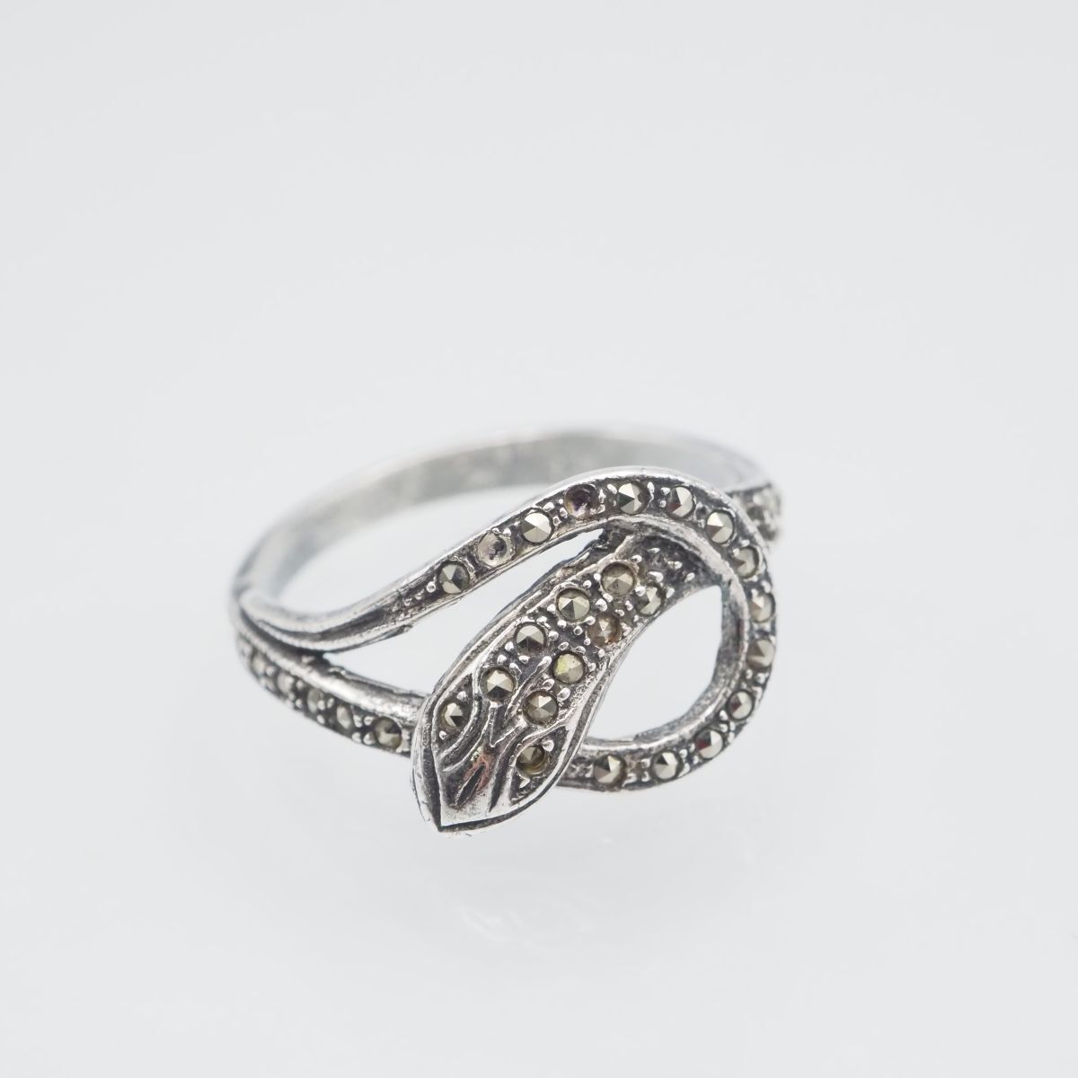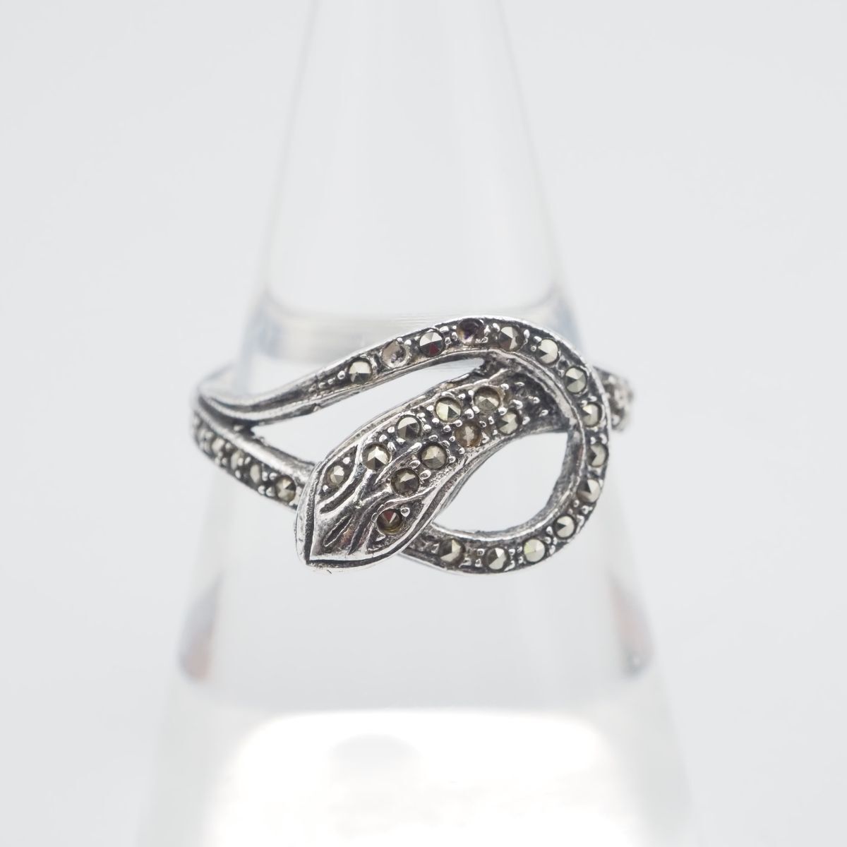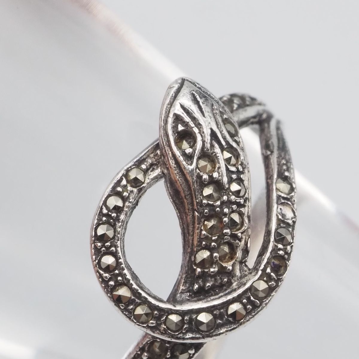 F173 マーカサイト マルカジット 925刻印 リング 蛇 ヘビ スネーク デザイン シルバー 指輪 ヴィンテージ 13号