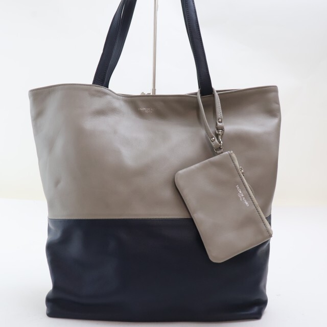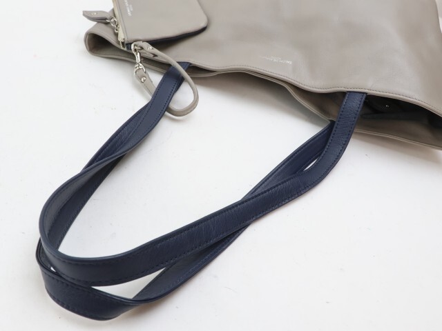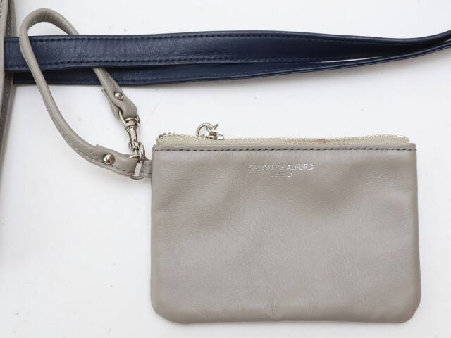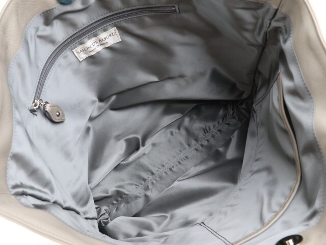 | 2509-32 サロンドアルファード トートバッグ 美品 SALONE DE ALFURD レザー製 グレージュ×ネイビー 小物入れ付き | |