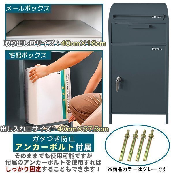 宅配ボックス 一戸建て用 おしゃれ ポスト一体型 大容量 郵便受け 置き型ポスト 郵便ポスト スタンドタイプ 鍵付き グレー
