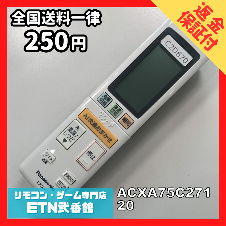C2D670 【送料250円】エアコン リモコン / Panasonic パナソニック ACXA75C27120 冷房 暖房 動作確認済み★即発送★