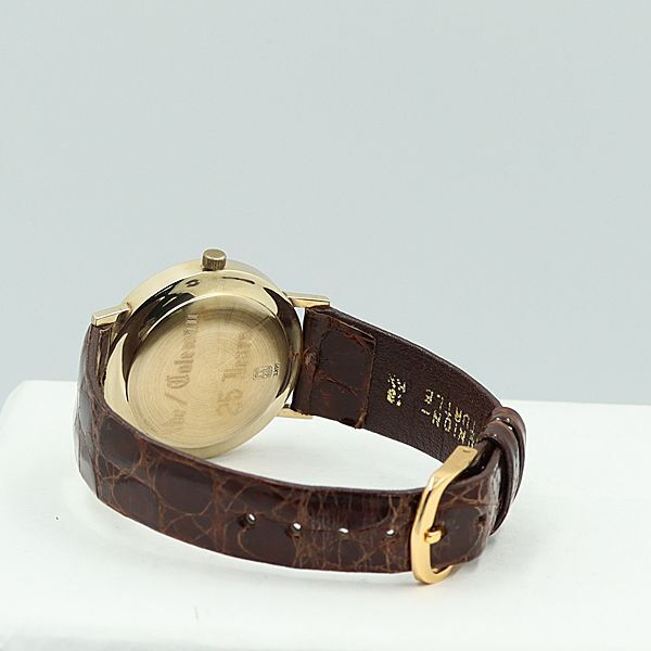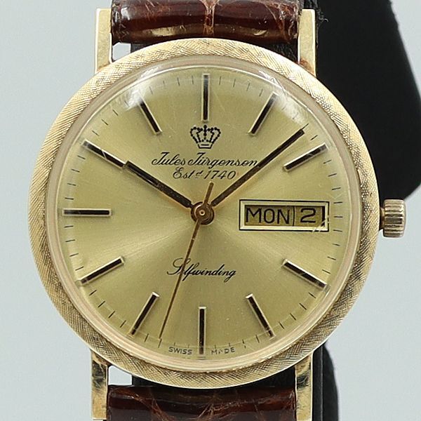 デッドストック級 箱付 ジュールジャーゲンセン 手巻 K14刻印 デイデイト ゴールド文字盤 メンズ腕時計 9735ABC 0038500STU