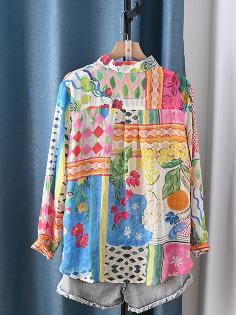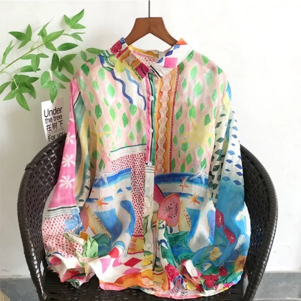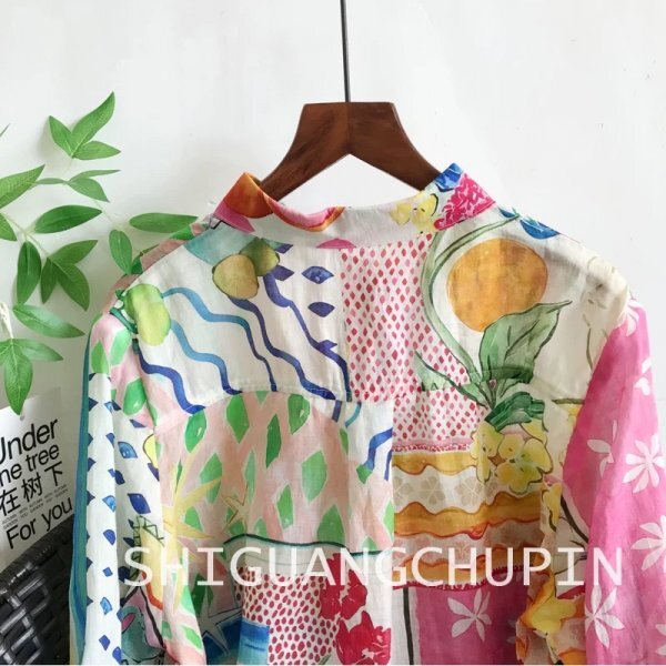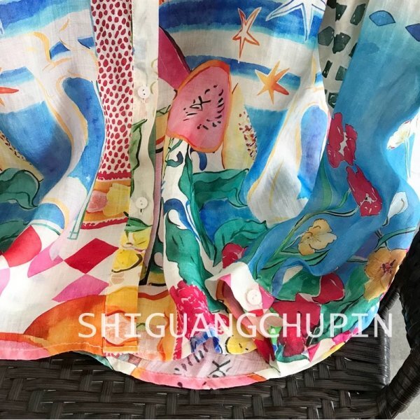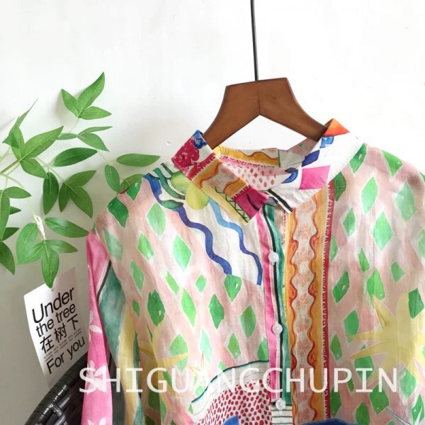 sg プリント花柄 フリーサイズ ワイシャツ チュニック トップス 麻100% 大人可愛 ナチュラル 花柄126
