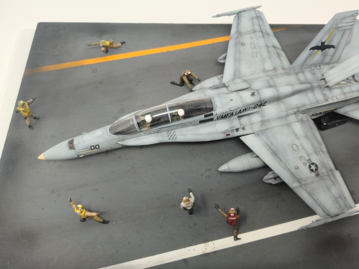 出品写真の中で航空機と一緒に撮影されたデッキクルーは作例イメージです。航空機、ベース台は付属しません。撮影で道路に見えるのは撮影ボックス内の撮影専用台で、直に地面に置いて撮影したものではありません。