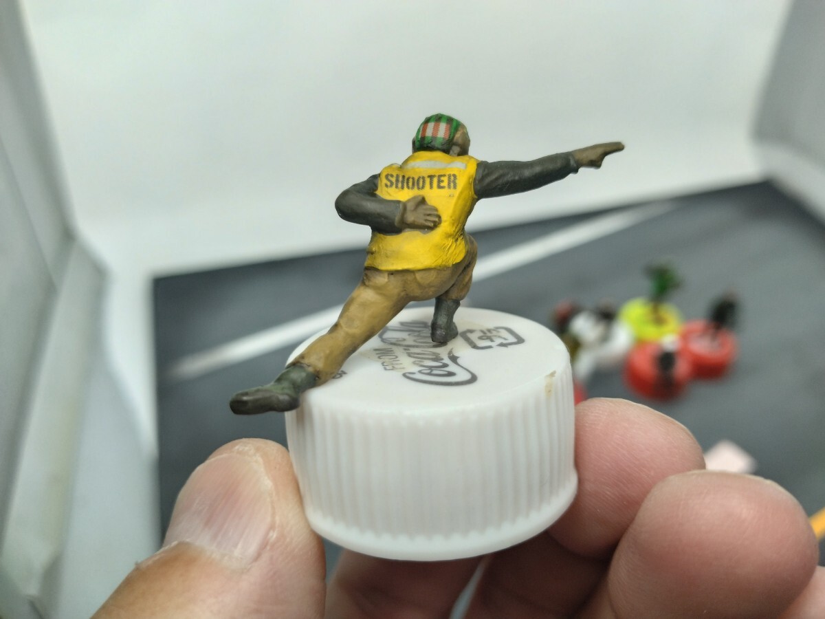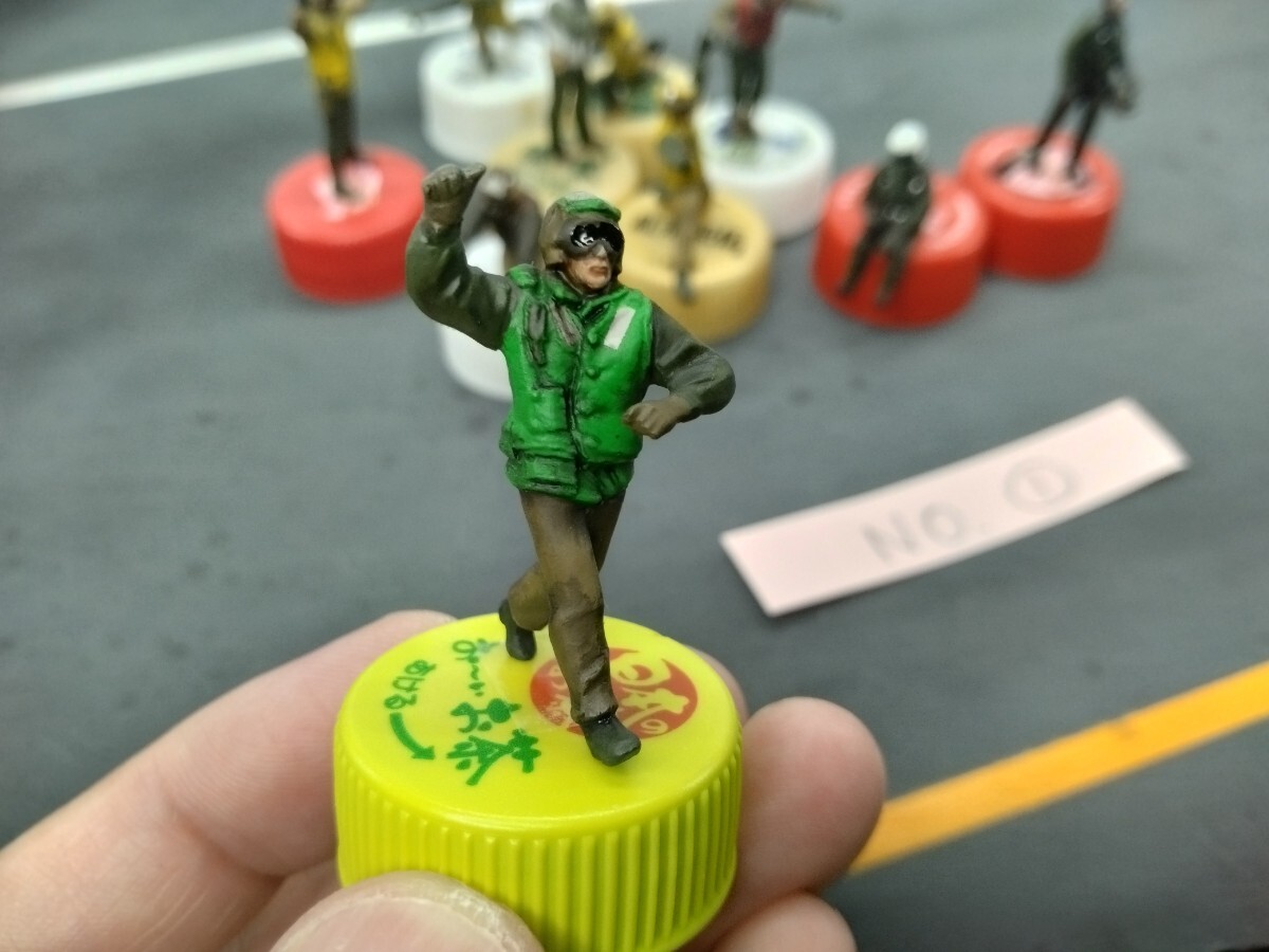 出品写真では練り消しゴムで仮固定しての撮影です。自立しないデッキクルーもいますので、加工が必要かもしれません。実際には緑色のクルーがポーズ的に自立が難しく撮影する場合、練り消しゴム等の補助が必要です。