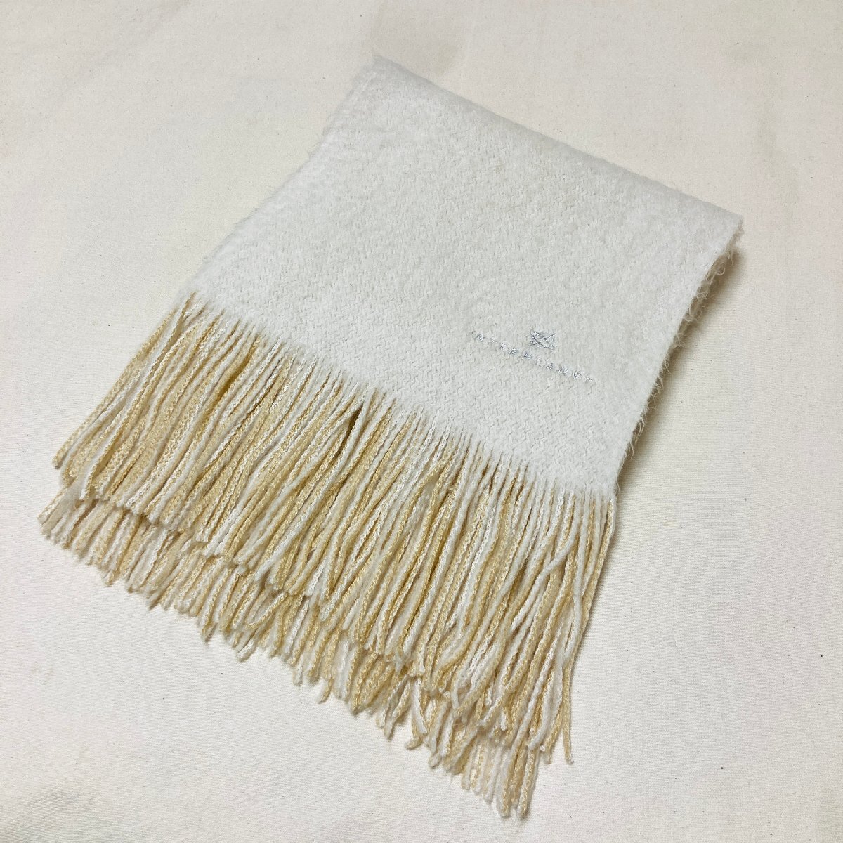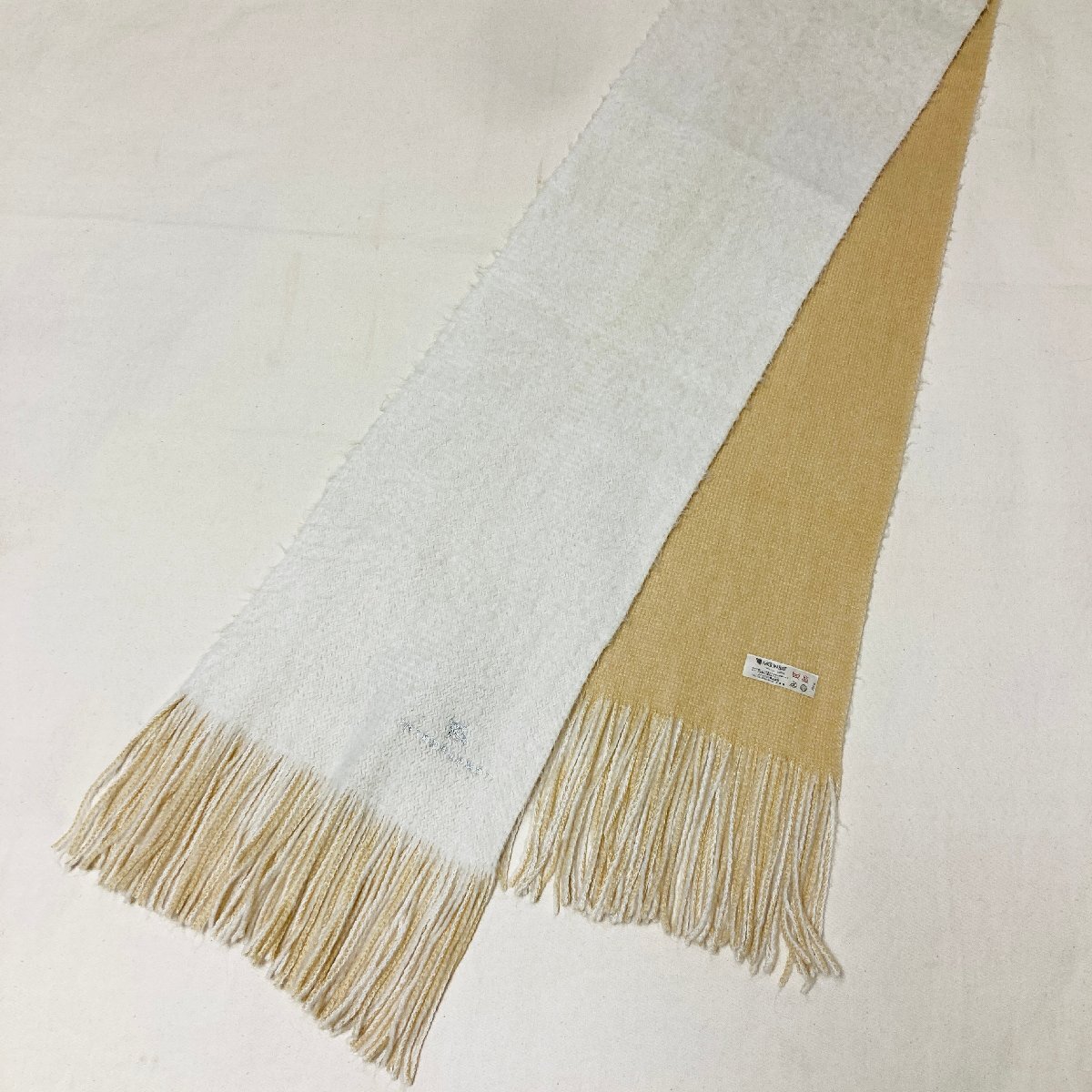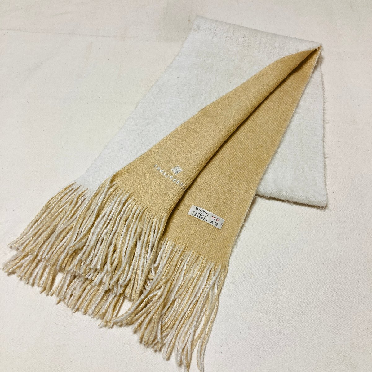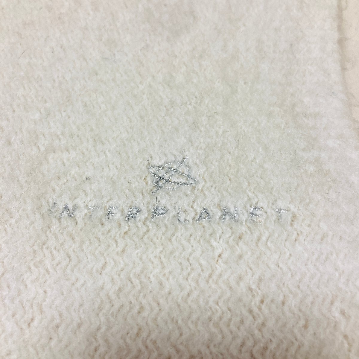 【100円スタート】INTERPLANET MOON BAT 日本製 ロゴ刺繍 ニット マフラー ホワイト/ベージュ やわらかタッチ 24 × 164cm