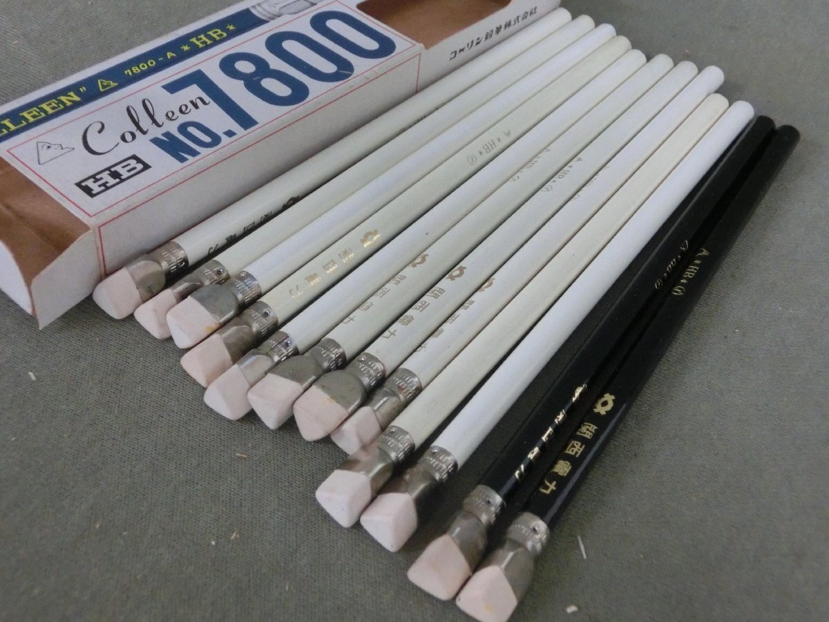 ●★M―485★鉛筆59本 大量まとめ コーリン鉛筆 No.7800 HB 三角消しゴム 付き/ビンテージ コレクション 関西電力 当時物[60]