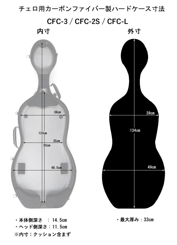 ■チェロ用カーボンファイバー製ハードケース サテン CFC-2S