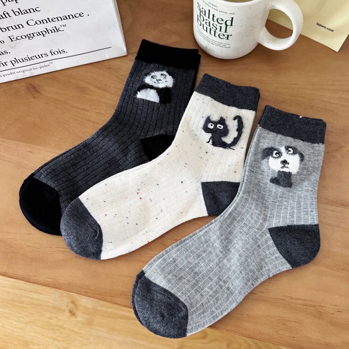 キャラクター 刺繍 もふもふ ソックス 靴下 3足