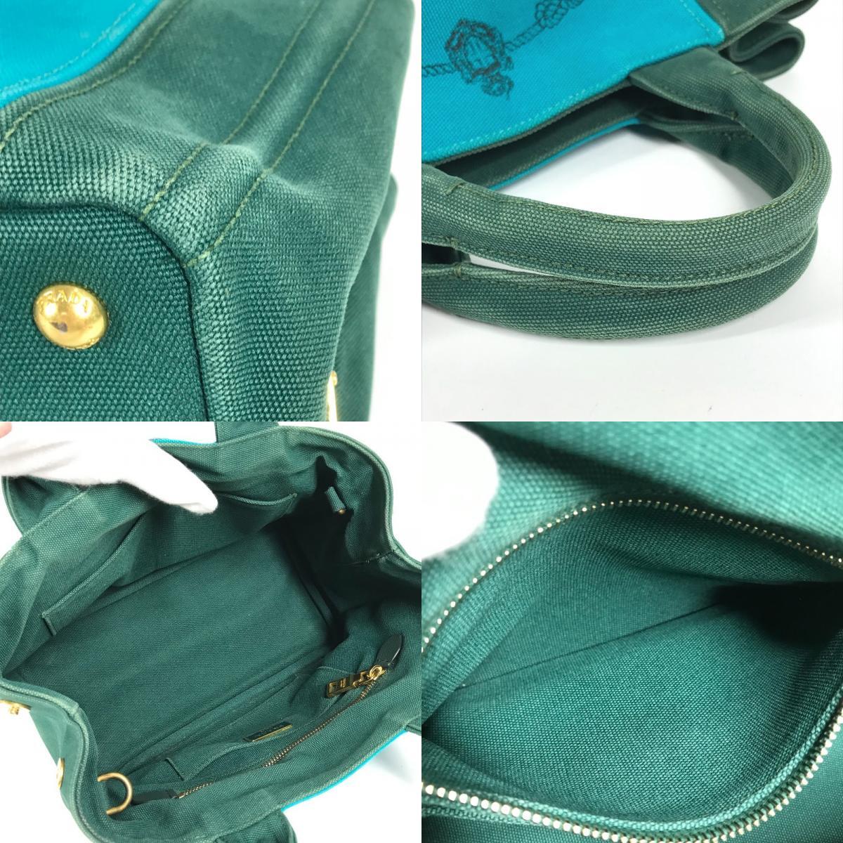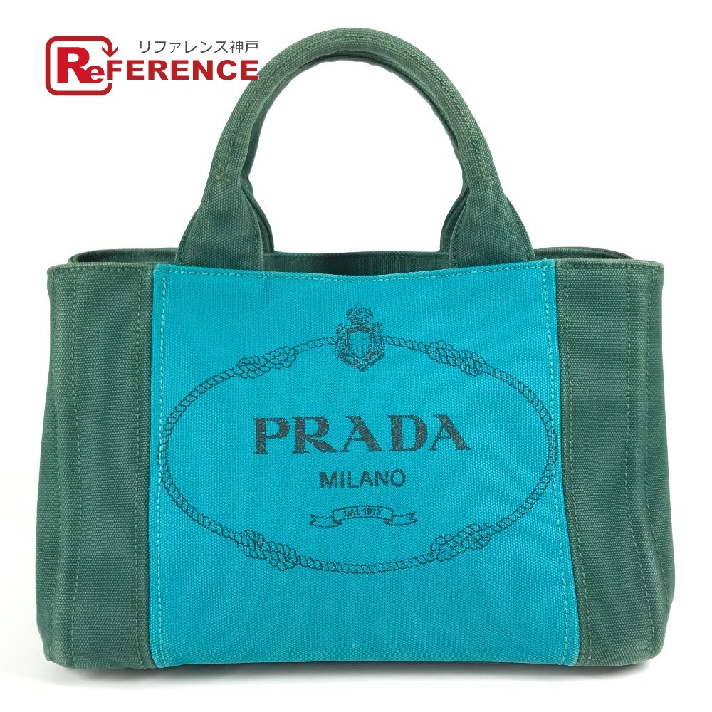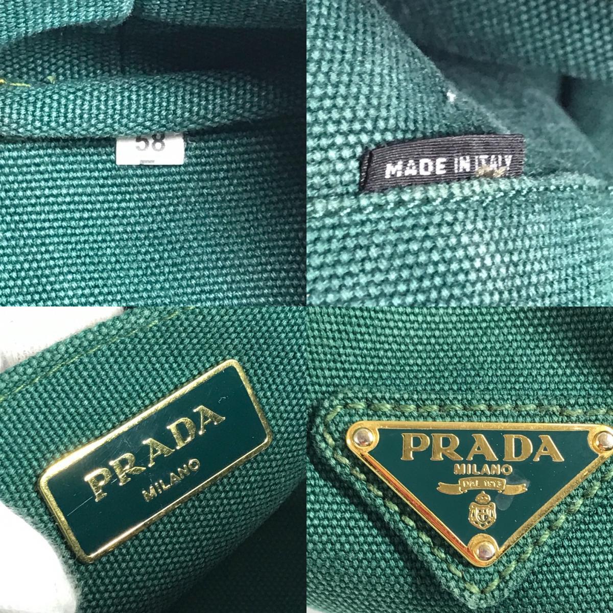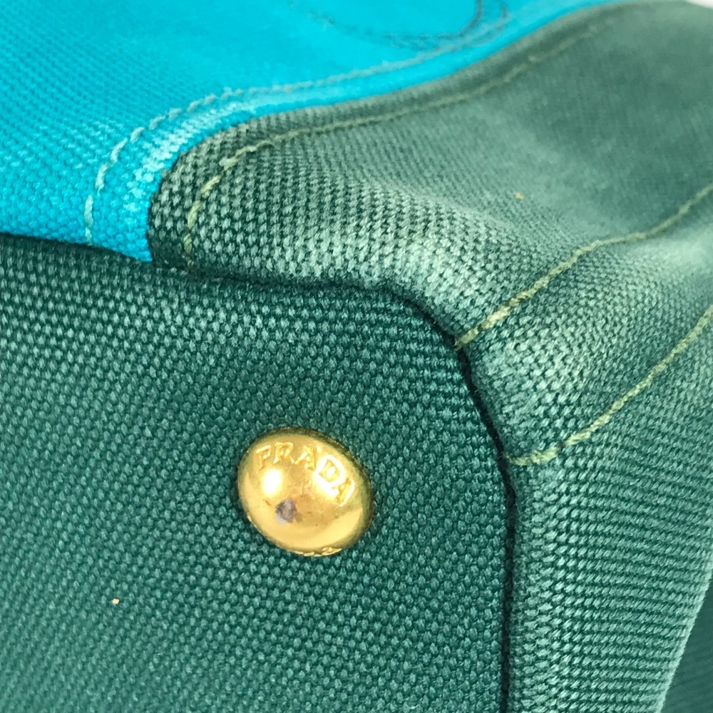 PRADA プラダ カナパ ロゴ ストライプ カバン トートバッグ ハンドバッグ グリーン レディース【中古】