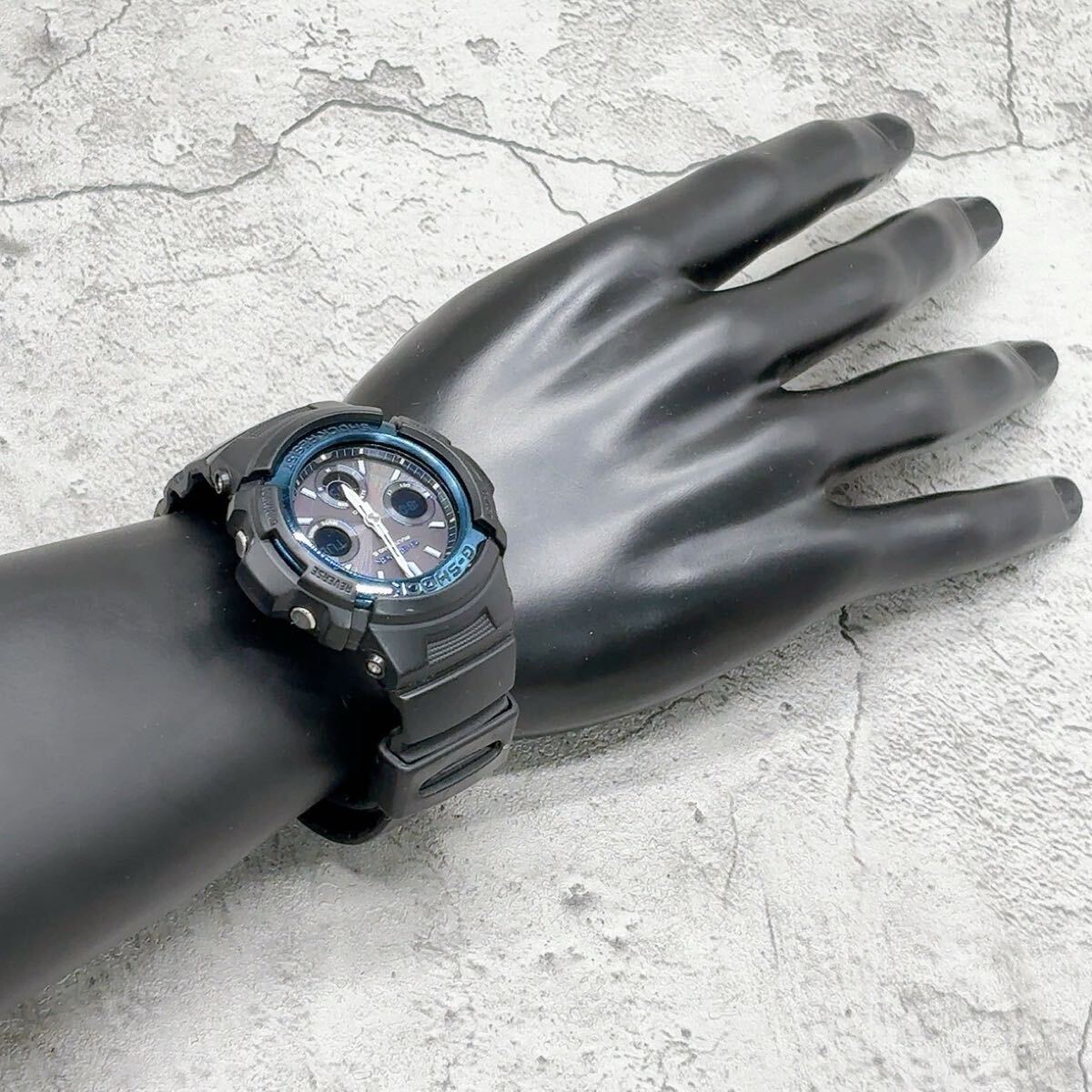 【稼働 美品】CASIO カシオ G-SHOCK ジーショック 腕時計 電波ソーラー 純正 ラウンド デジタル ブラック 文字盤:ブルー メンズ AWG-M100A