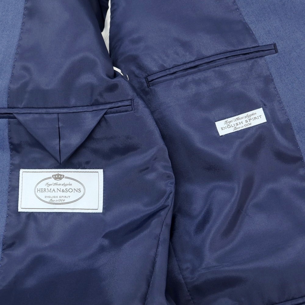 ・春夏向け ・HERMAN & SONS ・中国製 ・透け感 なし ・ダブル6つボタン ・開きみせ ・箱ポケット ・フラップポケット ・袖裏地あり ・サイドベンツ ・ジッパーフライ ・裾ダブル仕上げ