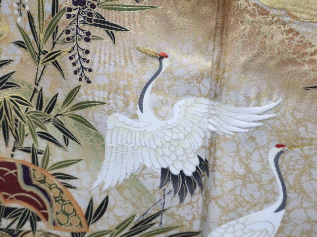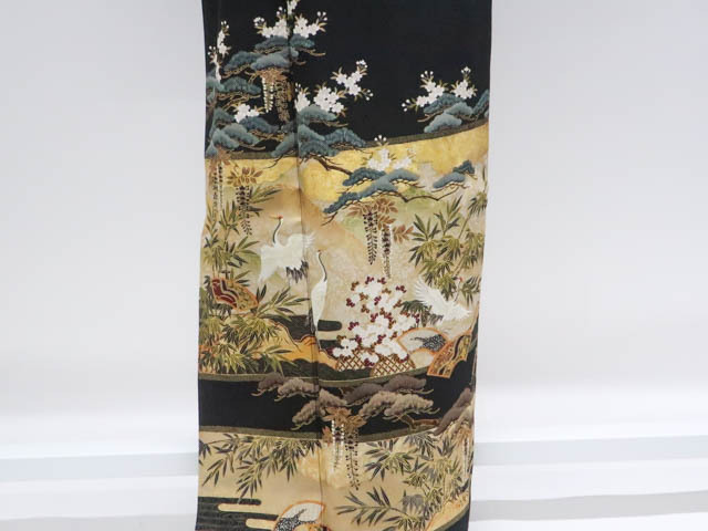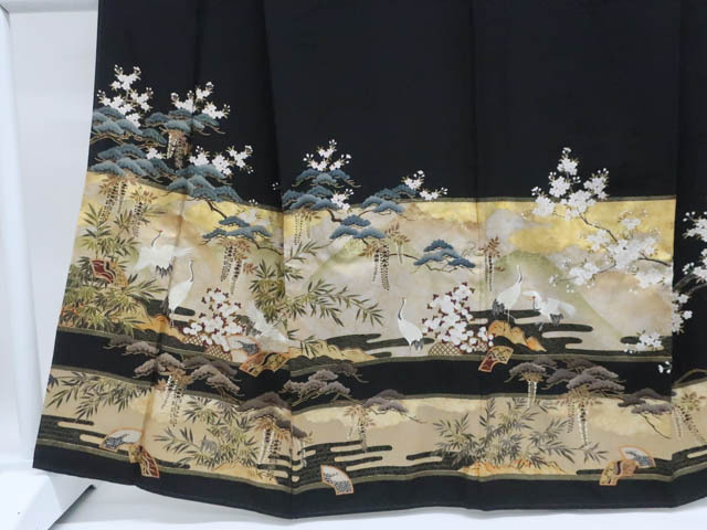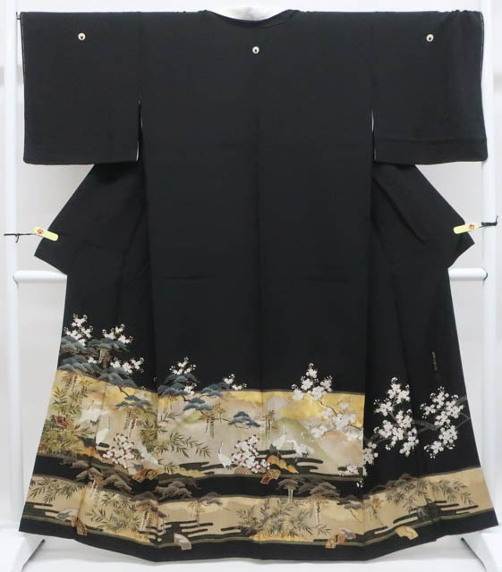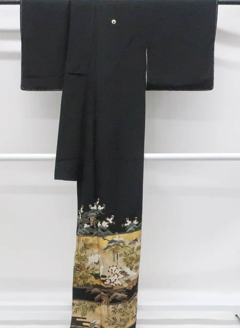 リサイクル商品のため、比翼に薄シミ、金彩剥がれが少々がございますがご着用いただけると存じます。 地色は黒です。 1枚目の画像が近いお色かと思われます。 素材は正絹です。 日本国内から発送いたしております。 発送後は追跡番号をお知らせいたします。 スタッフによる手作業での検品採寸済み。 |
