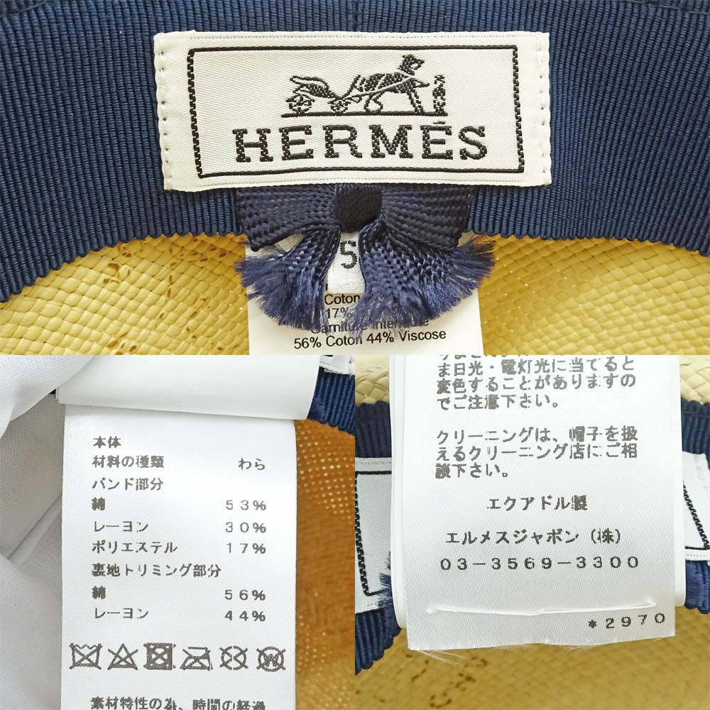 【栄】エルメス トリニダード ストローハット 58 わら リボン ベージュ ブラウン レディース 小物 その他