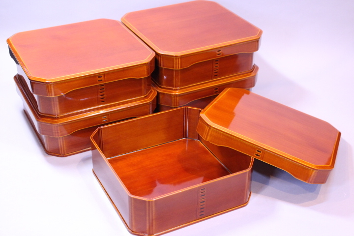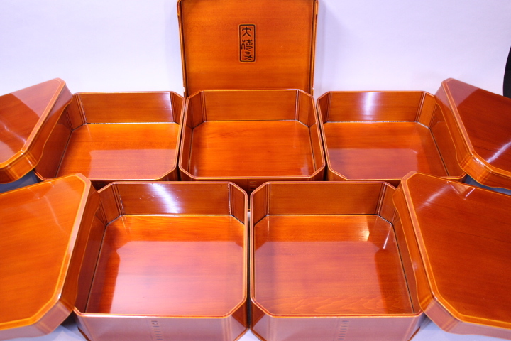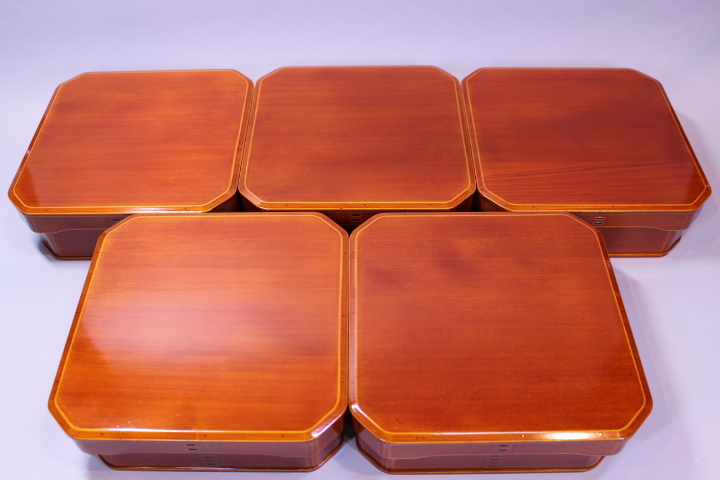d-7109 飛騨春慶塗 大徳寺 縁高重箱 五客揃 刻印有