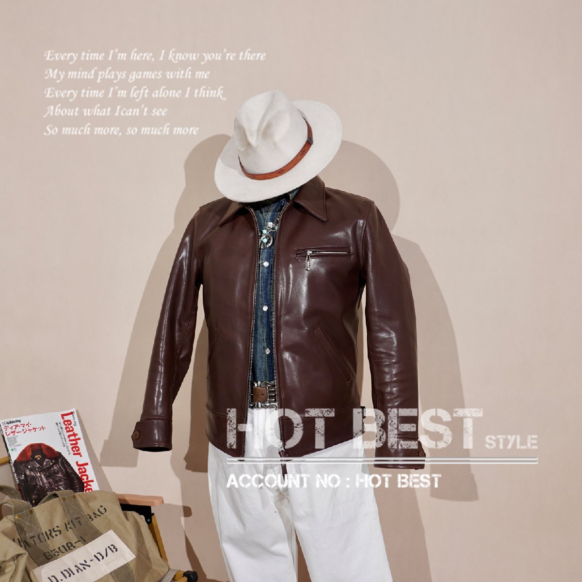 1.3mm ホースハイド 1930s トラッカースタイル シングルライダース メンズ 革ジャン レザージャケット 植物鞣し 馬革 Y1422/L