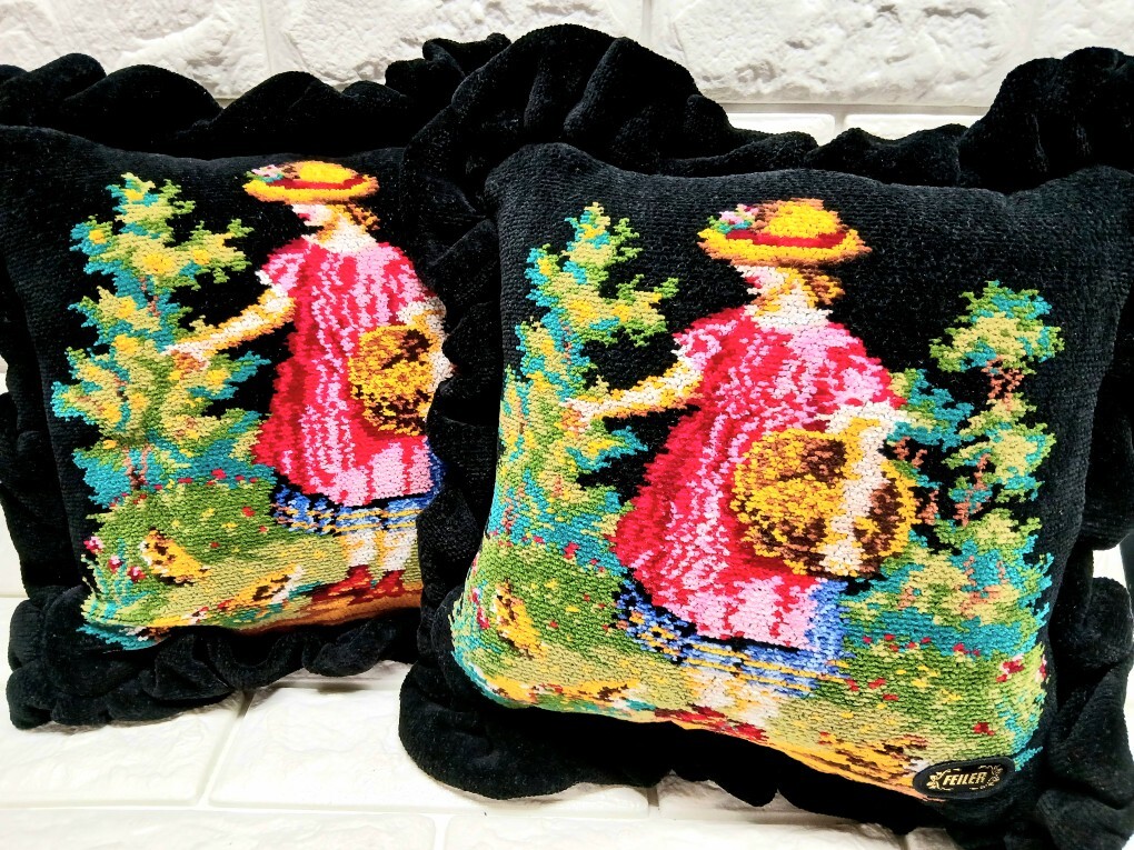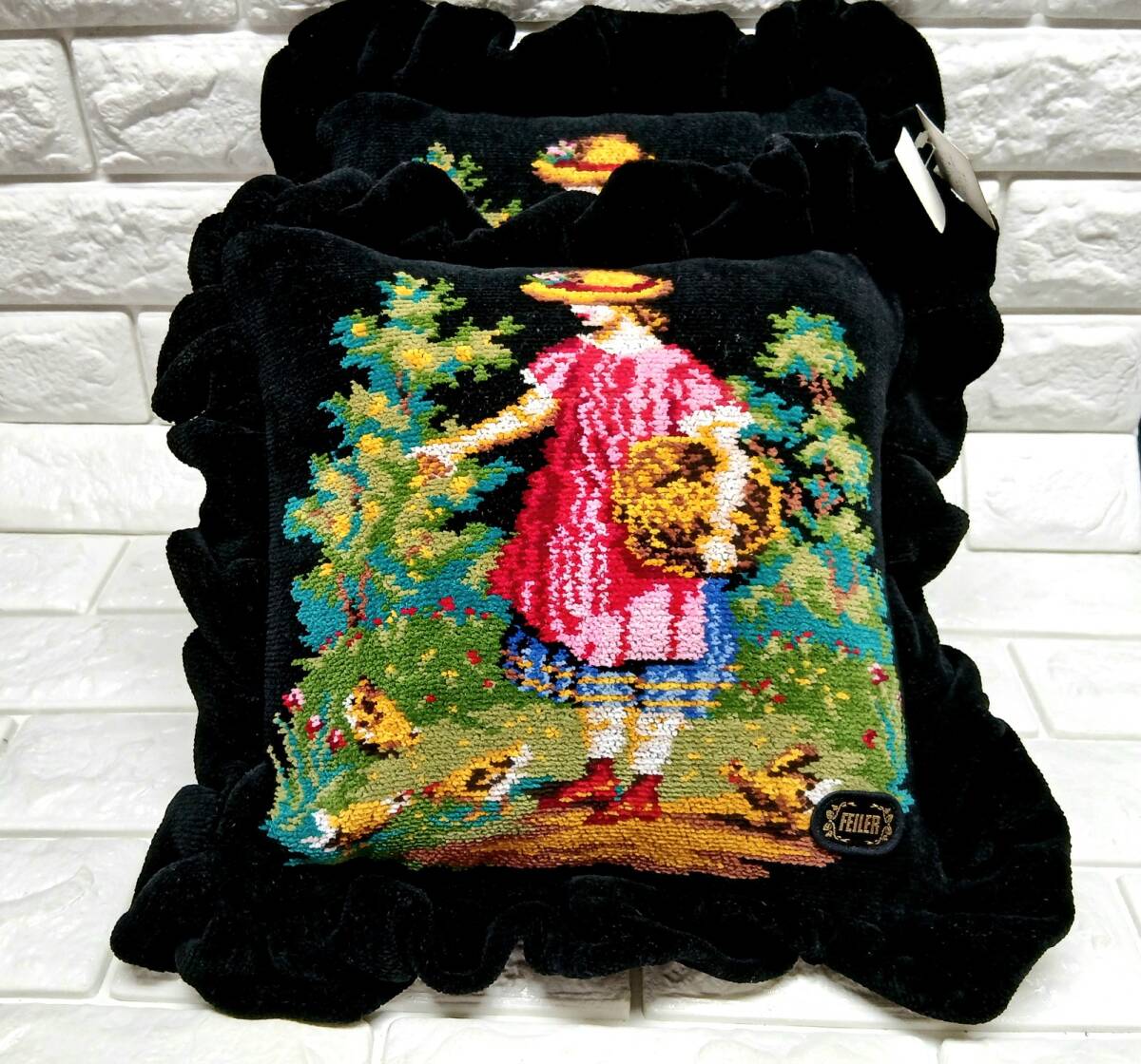 n040 タグ付 FEILER/フェイラー 小柄 クッション 同2点 ドイツ製