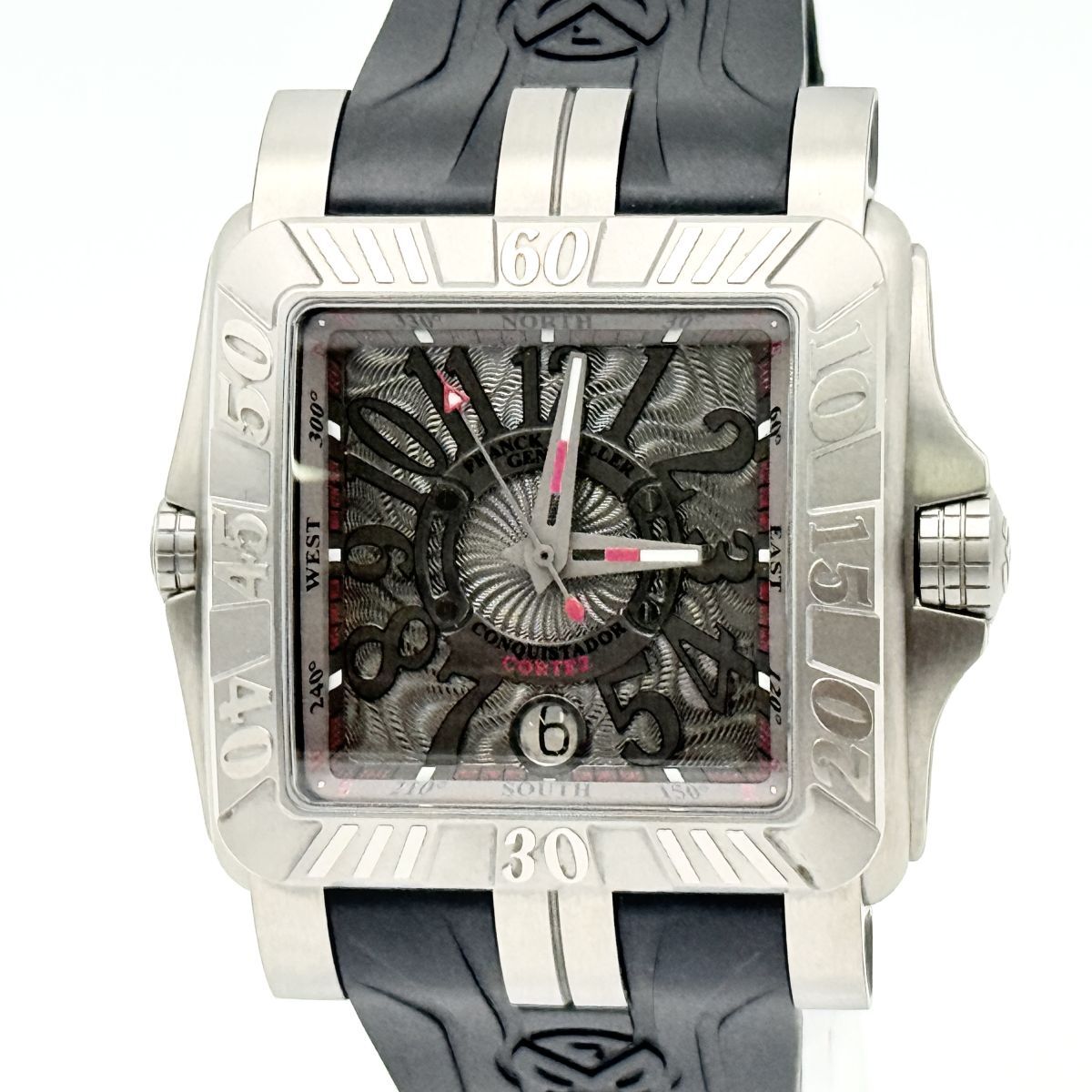 K7082 FRANCK MULLER フランク・ミュラー コンキスタドール 10800SCDTGPG 078 TI ラバー AT 自動巻 グレー文字盤 腕時計 箱 ギャラ