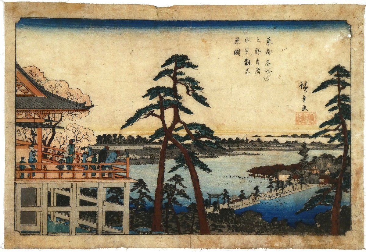 122 歌川広重 東都名所上野自清水堂観不忍図◆名所絵◆版画◆浮世絵◆真作